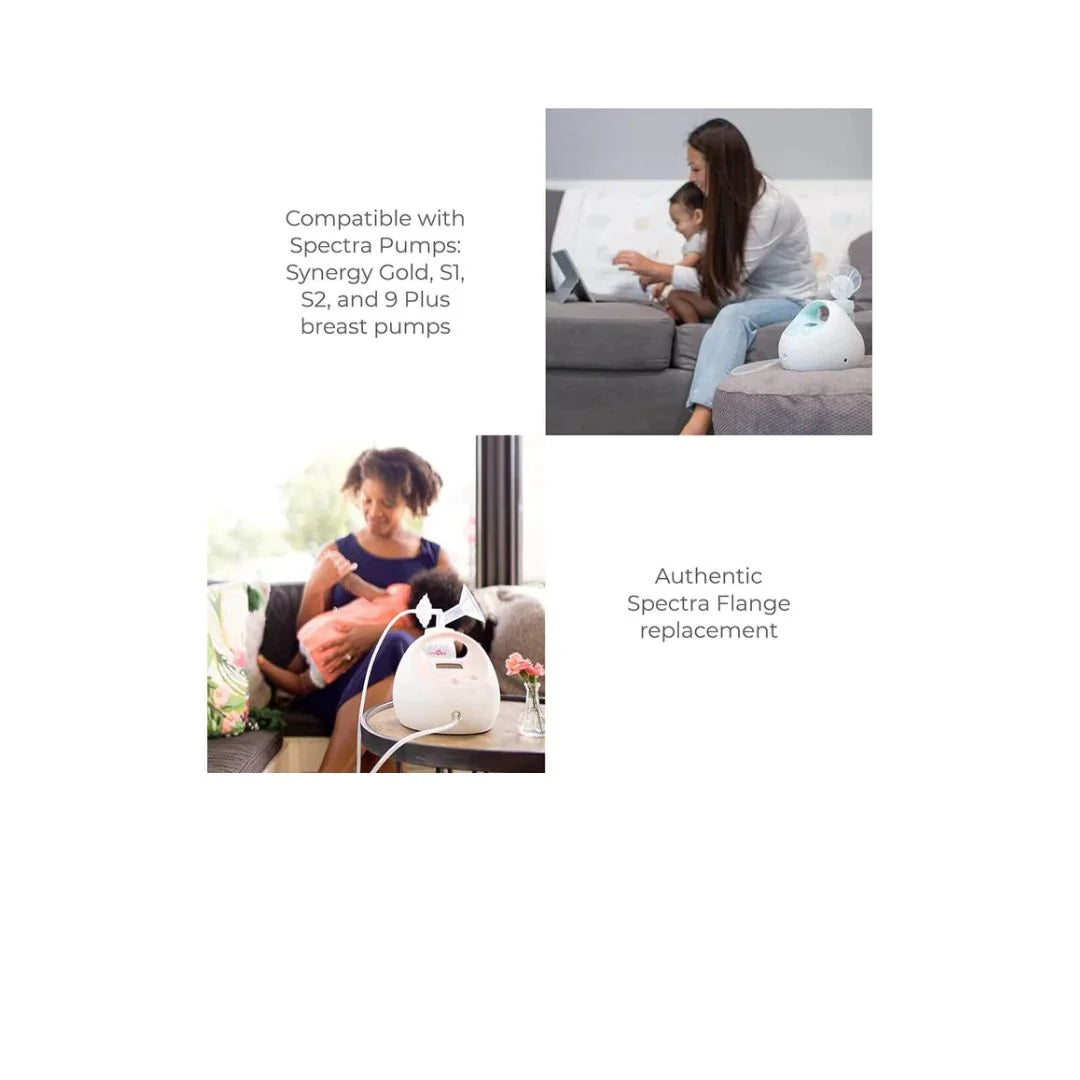 حلمة الثدي Spectra® ذات العنق العريض متوافقة مع جميع مضخات Spectra® الكهربائية (*بالنسبة للطرازات المزدوجة، تحتاجين إلى قطعة محول الأنابيب). وهي متوفرة بأحجام مختلفة.