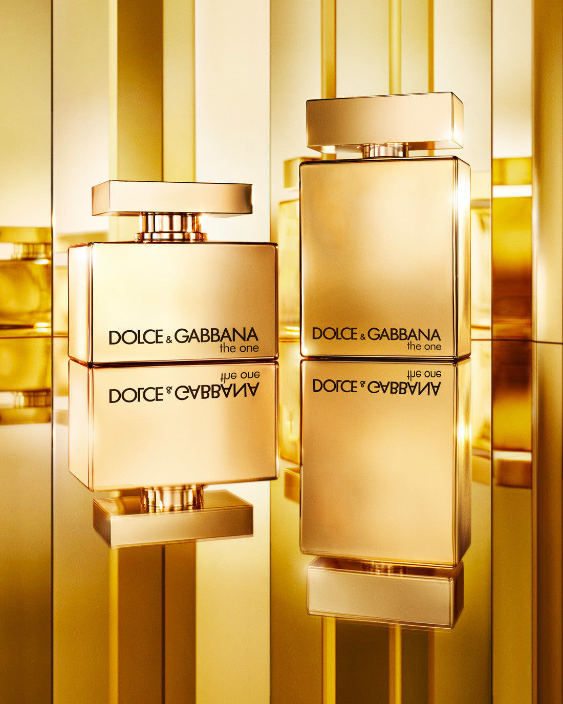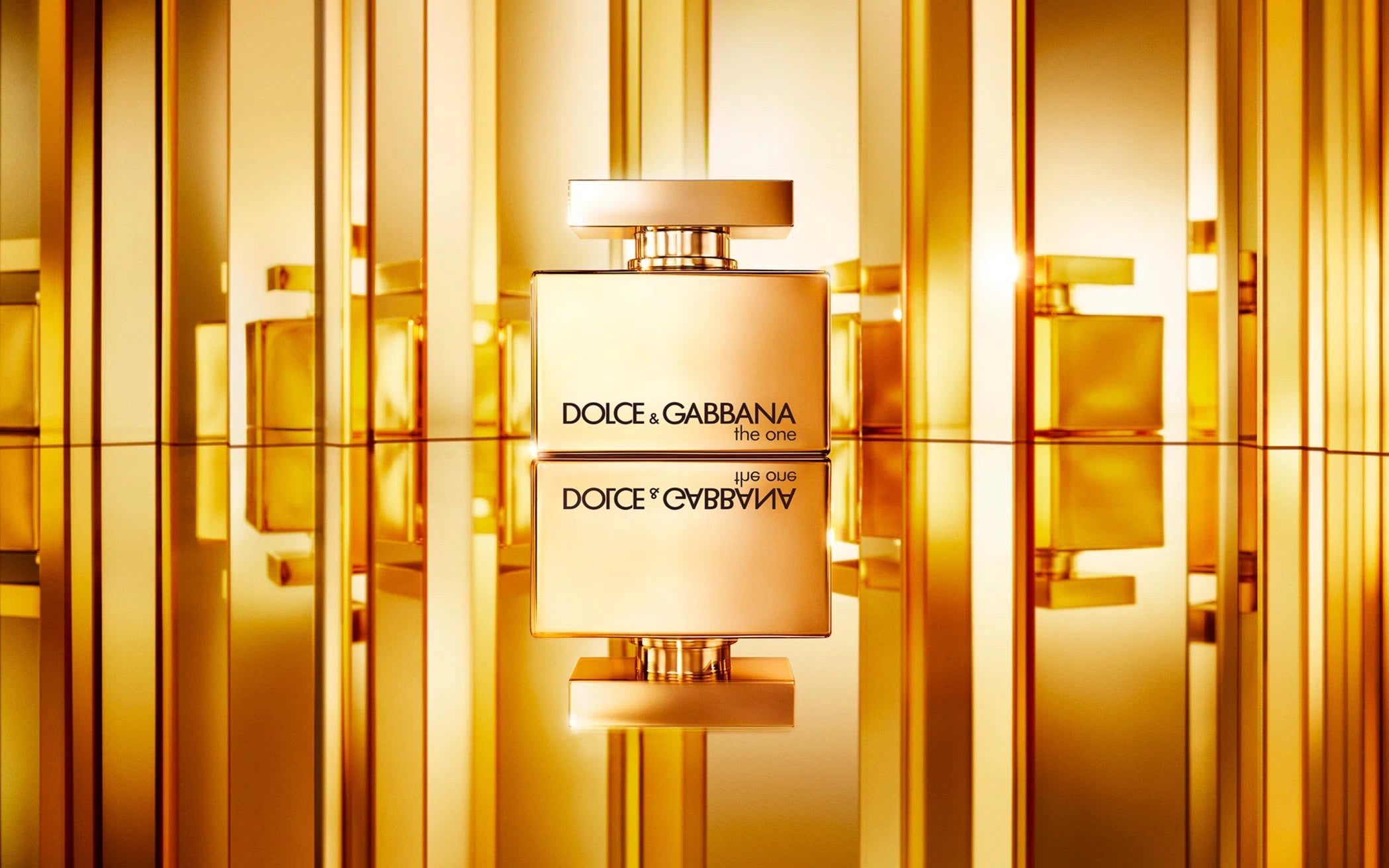 يعيد تصميم زجاجة عطر «The One Gold Eau de Parfum Intense» من Dolce&Gabbana ابتكار الخطوط الأساسية لعطر «The One» الأصلي، مزينًا بطلاء ذهبي كثيف.