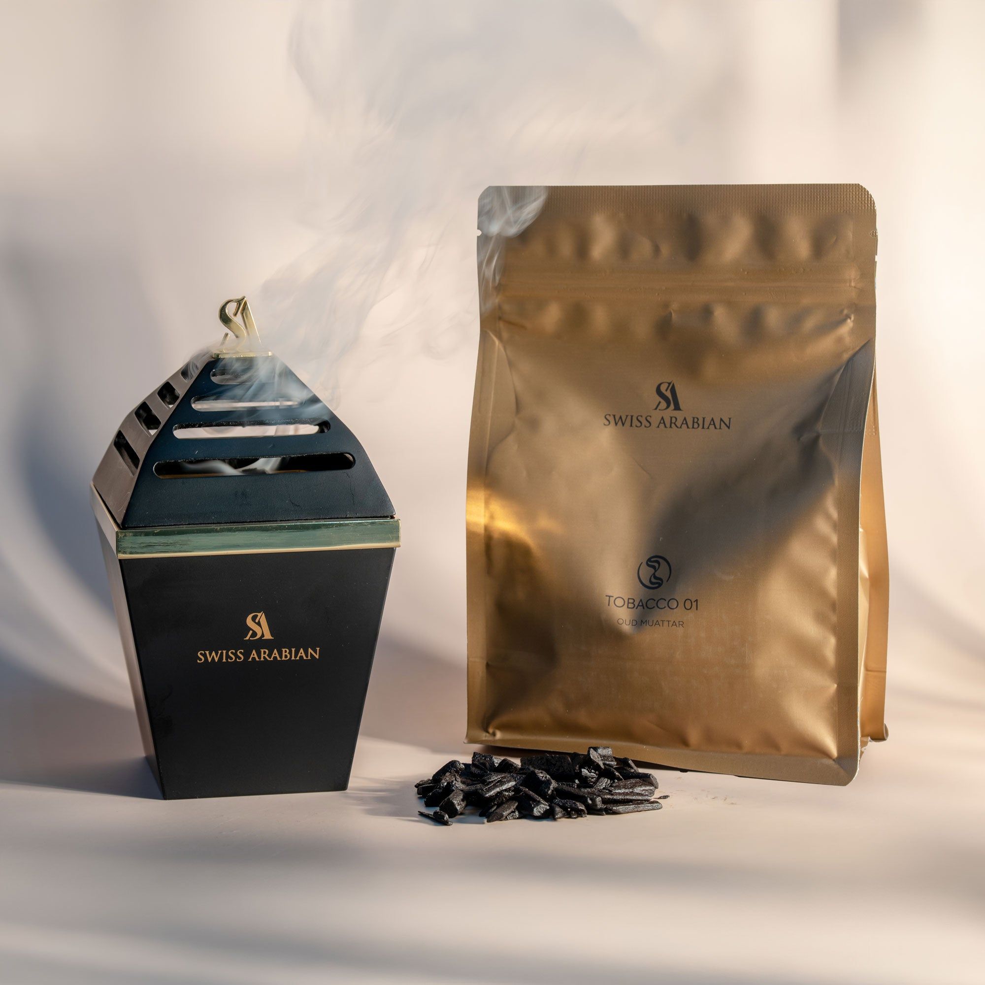 جريء وراقٍ، Tobacco O1 Muattar هو مزيج خشبي شرقي يوحي بالقوة والسحر. يبدأ برائحة البرقوق اللذيذ والتفاح بالعسل والعسل الذهبي، مع نكهة خفيفة من الفلفل الوردي واللبان. تزهر القلب برائحة العنبر والإيلنغ إيلنغ والباتشولي، مما يضيف لمسة من السحر الغريب. مع استمرار احتراقه، تتبقى طبقات من المسك والكشمير والفانيليا وخشب الصندل والتبغ - مما يخلق تجربة غنية للغاية وخالدة تعبر عن التراث والرفاهية.
