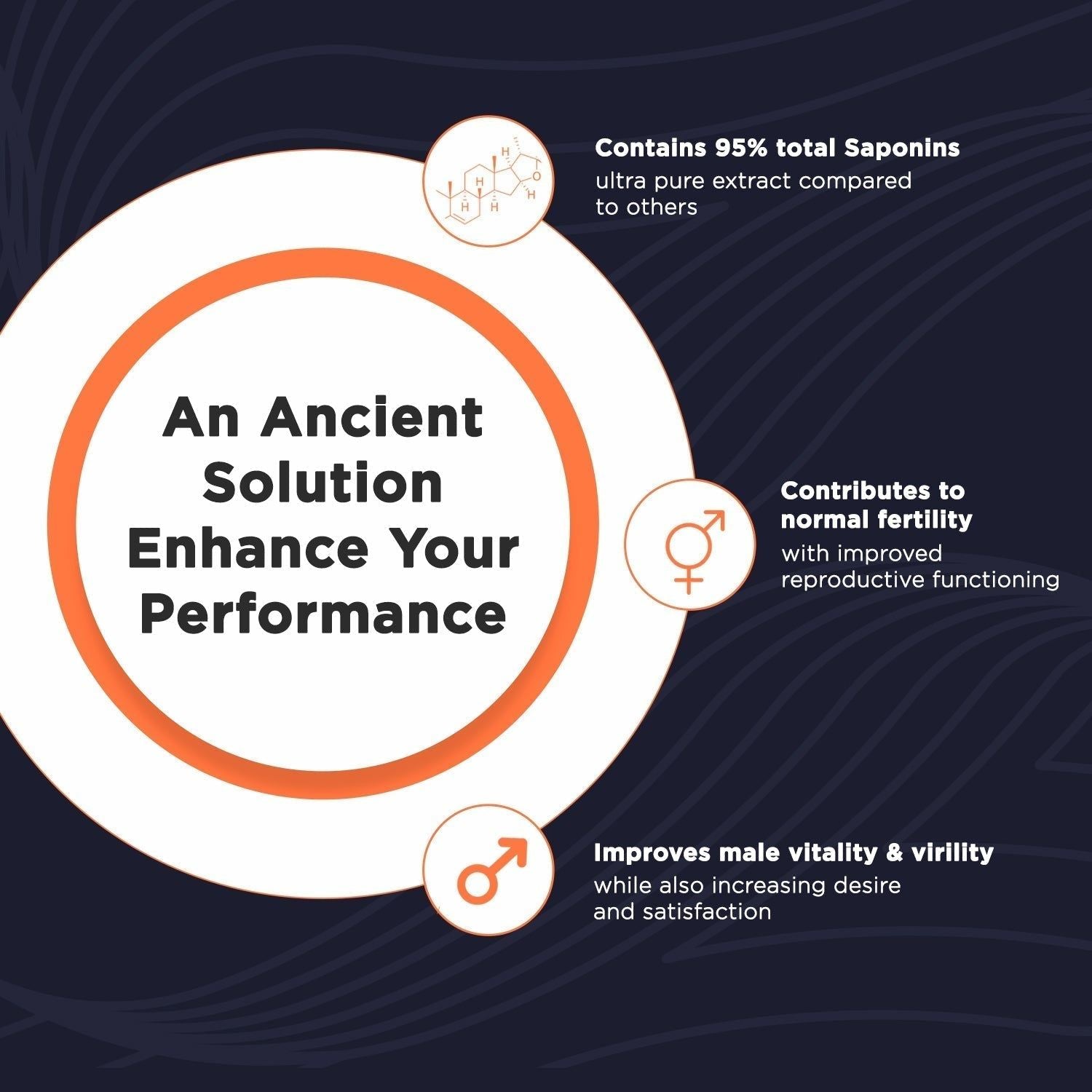 شلاجيت، مادة غنية بالمعادن مستخرجة من جبال الهيمالايا، غنية بحمض الفولفيك وأكثر من 80 معدنًا أساسيًا، تعزز الطاقة ووظيفة المناعة والصفاء الذهني. إلى جانب التريبولوس، نبات معروف بقدرته على دعم مستويات هرمون التستوستيرون وتحسين الأداء الرياضي، يعمل هذا المكمل الغذائي بشكل تآزري لتعزيز الحيوية الجسدية والعقلية.