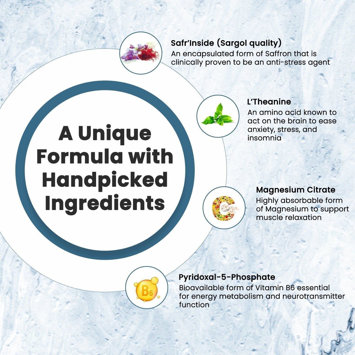 Zen هو تركيبة فريدة تحتوي على مستخلص الزعفران العضوي، L-الثيانين، فيتامين B6 وسيترات المغنيسيوم، التي تساهم في الوظيفة النفسية الطبيعية وتقليل التعب والإرهاق.