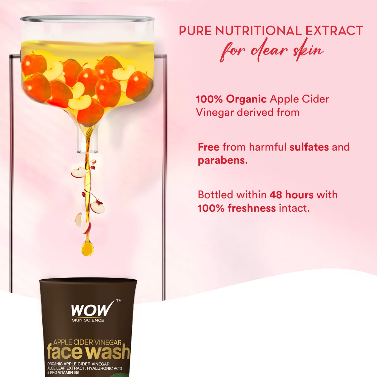 واو سكين ساينس غسول الوجه بخل التفاح بدون بارابينات، كبريتات، سيليكونات وألوان عبوة من 2 زجاجة سعة 200 مل
