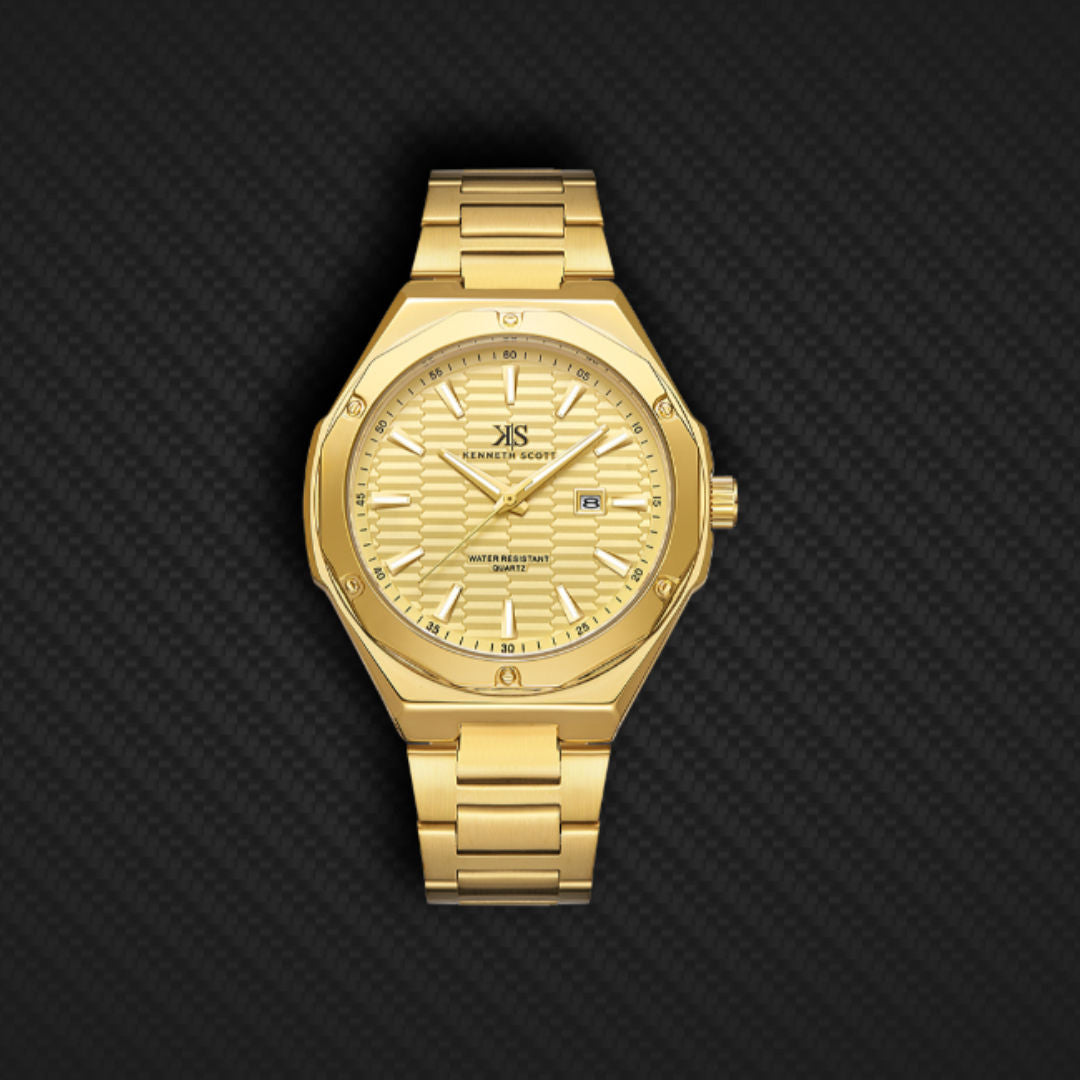 A stylish men’s analog watch collection from Kenneth Scott featuring a tonneau-shaped dial, quartz movement and stainless steel bracelet. Designed for everyday casual wear with reliable performance and a classic look that pairs with versatile outfits.
