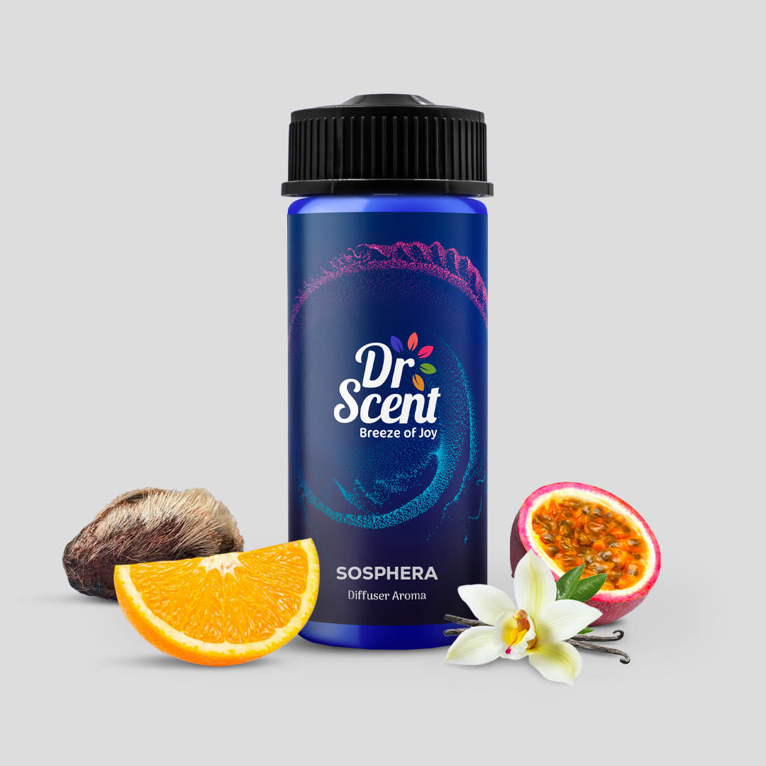 Enjoy the refreshing scent of fruits with Sosphera, a high-quality aromatic oil with a refreshing blend of orange, passion fruit, vanilla, and a hint of musk. With its strong fragrance, it is suitable for large spaces and can be easily used with various diffuser devices.