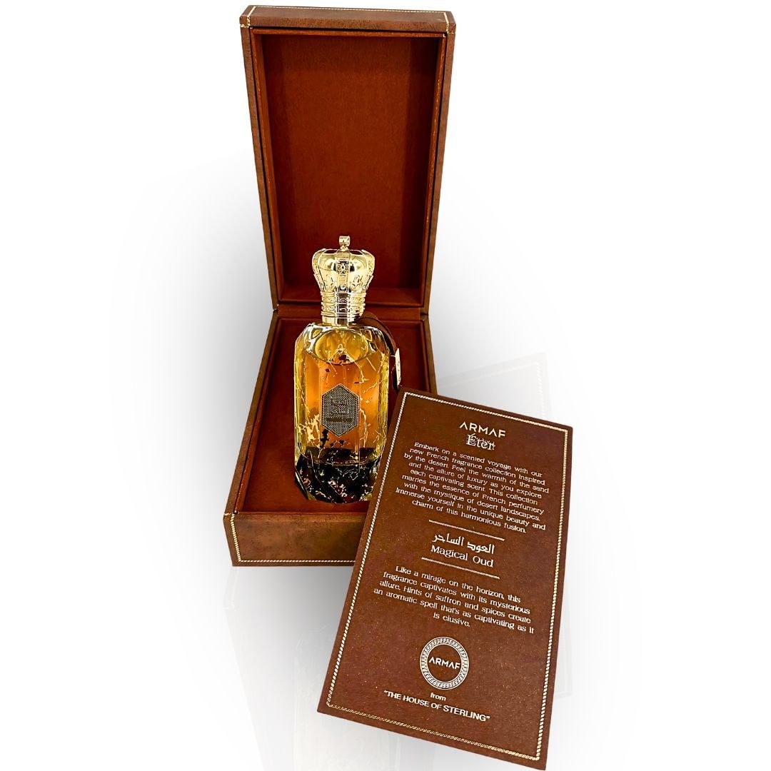 Armaf Éter Magical Oud is a bold and elegant unisex fragrance that captures depth and sophistication. It opens with the vibrant spice of saffron and pink pepper, leading into a refined heart of cedarwood and lily of the valley. The scent settles into a warm, smoky base of oud, vetiver, sandalwood, and tobacco, creating a mysterious and lasting trail. Perfect for those who appreciate rich, complex fragrances with timeless allure.