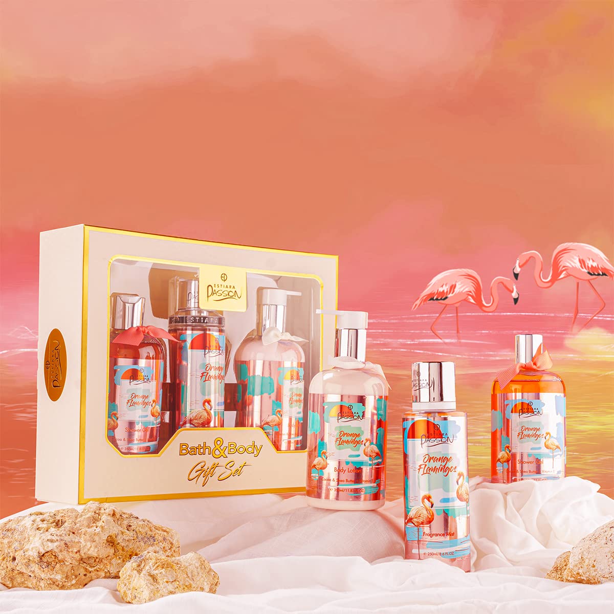 The Estiara Passion Orange Flamingo Gift Set is a vibrant, tropical-inspired trio that brings freshness and fun to your daily body care ritual. Infused with a lively blend of citrus and fruity notes, this set includes a nourishing body lotion, a refreshing body mist, and a gentle shower gel. Whether you're treating yourself or gifting someone special, Orange Flamingo delivers all-day freshness and radiant skin with a playful twist.