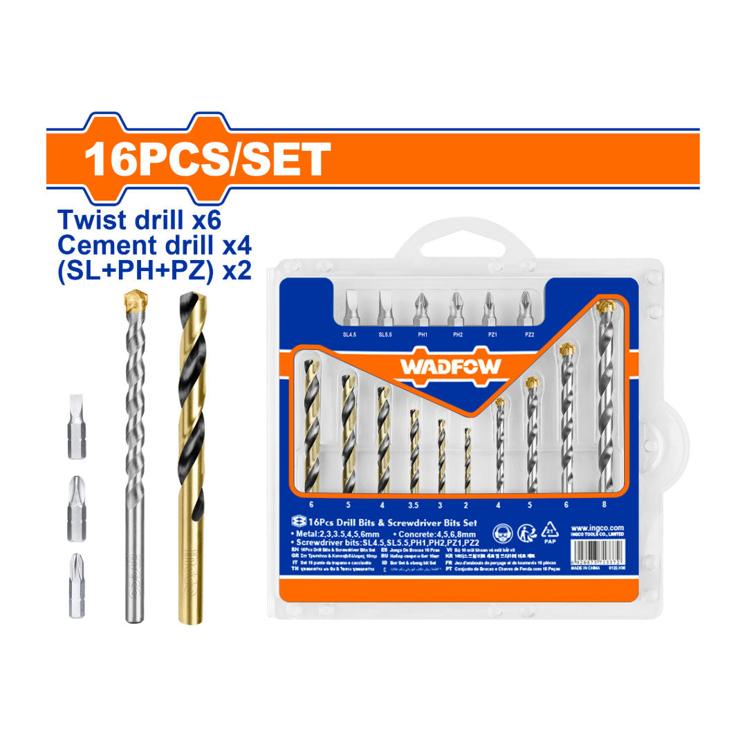 • Set Composition: 16 Piece Drill Bits and Screwdriver Bits Set