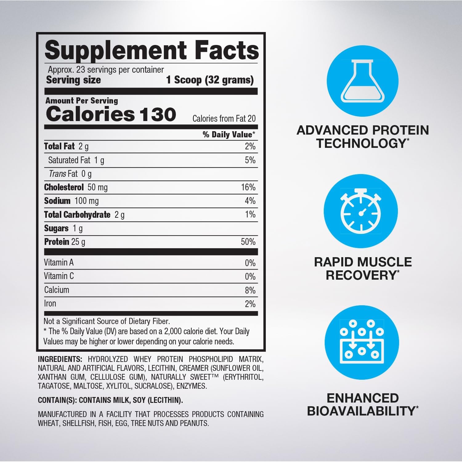 • Hydrolyzed Whey Protein: Advanced hydrolysis process for faster absorption and easier digestion.