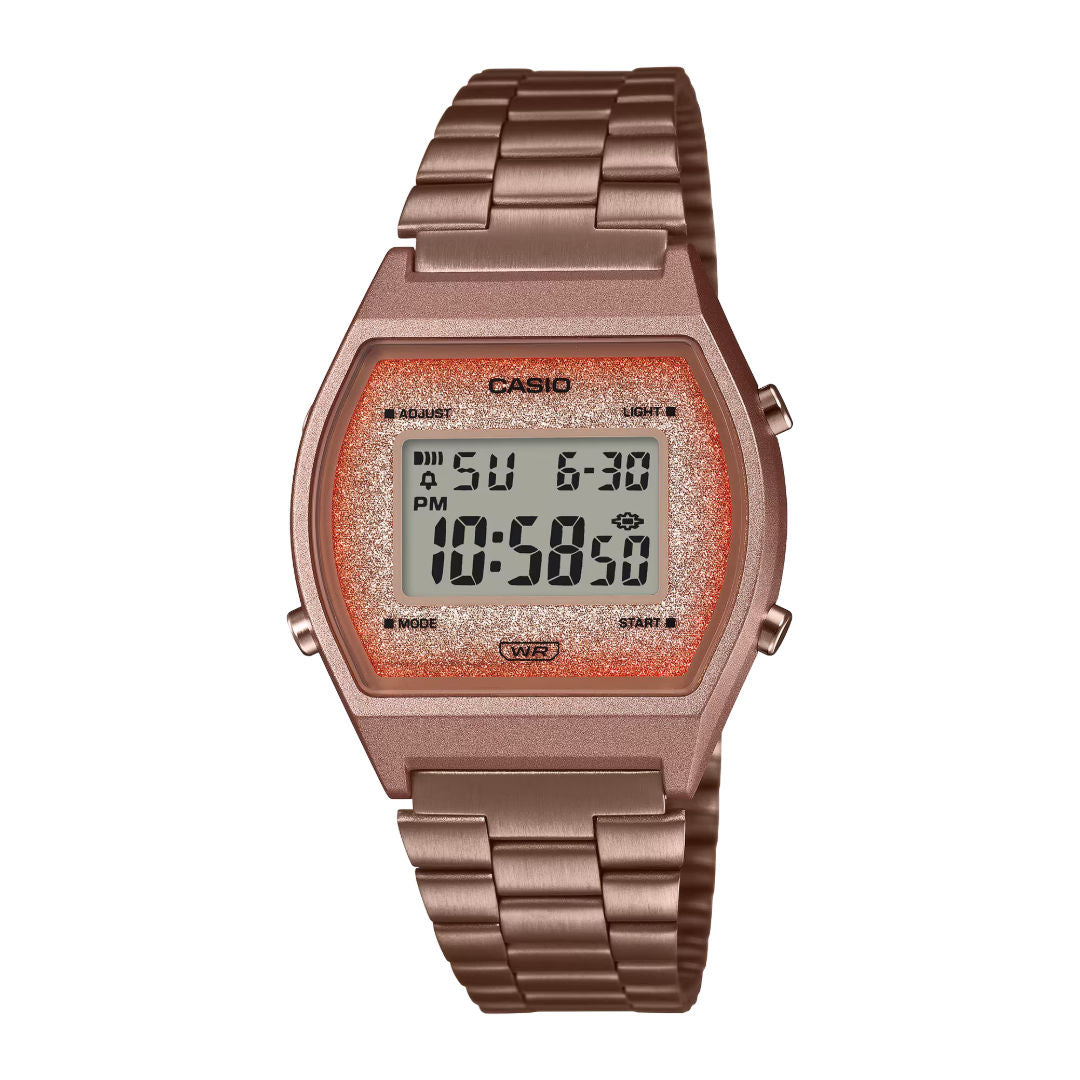 A stylish unisex digital watch featuring a trendy pink dial and a sleek retro design. Powered by Casio’s reliable quartz movement, it offers everyday functionality with a fashionable, modern touch.