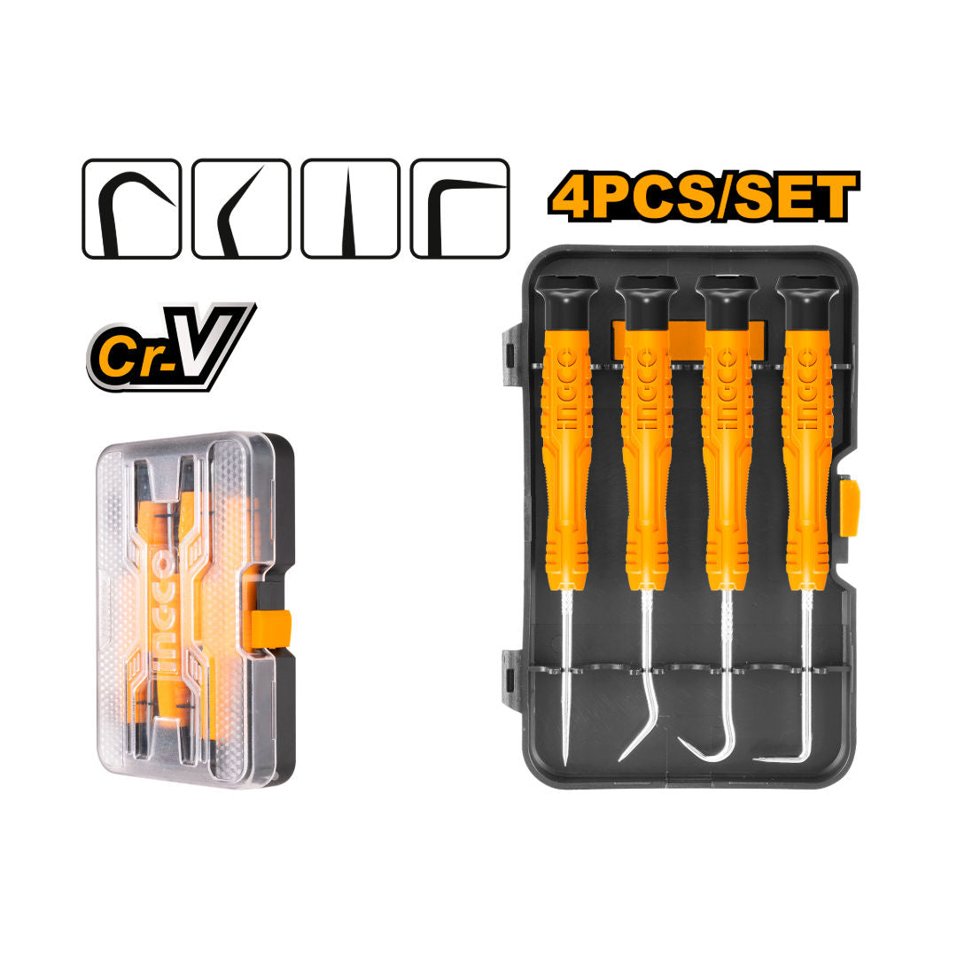 INGCO 4 Pcs Pick & Hook Set, Full Hook, 45°, 90°, Straight Pick, New Design Handle