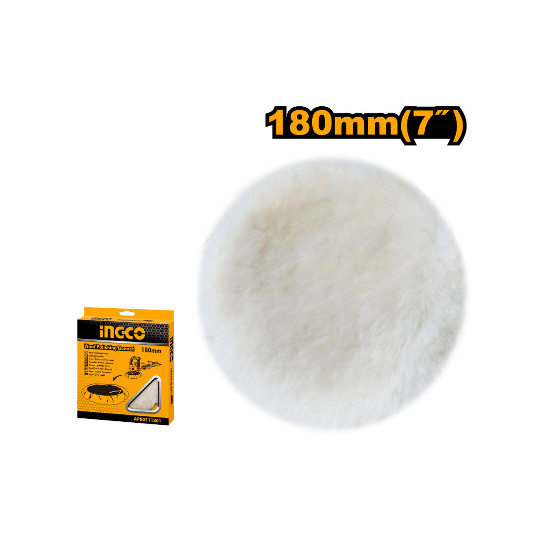 INGCO Wool Bonnet 180mm, Real Wool Polishing Pad with Drawstring Design