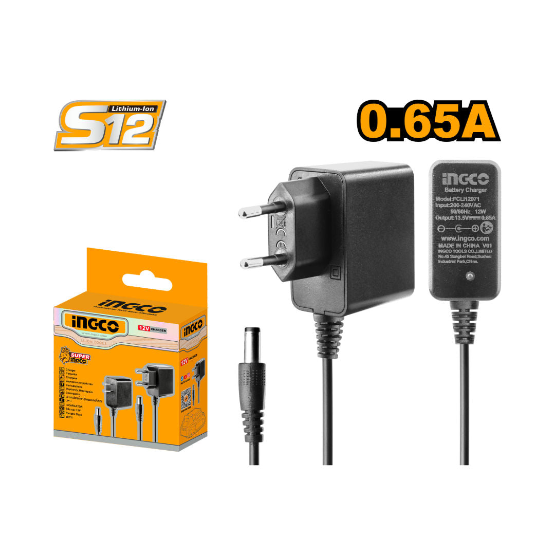 INGCO S12 Battery Charger, Input: 220–240V~ 50/60Hz, Output: 12V / 0.65A