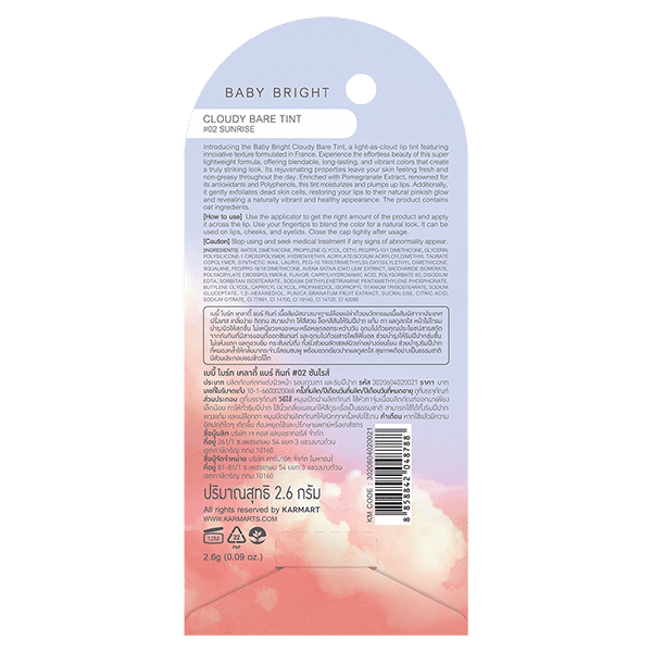 CLOUDY BARE TINT 2.6G BABY BRIGHT (M) #02 SUNRISE