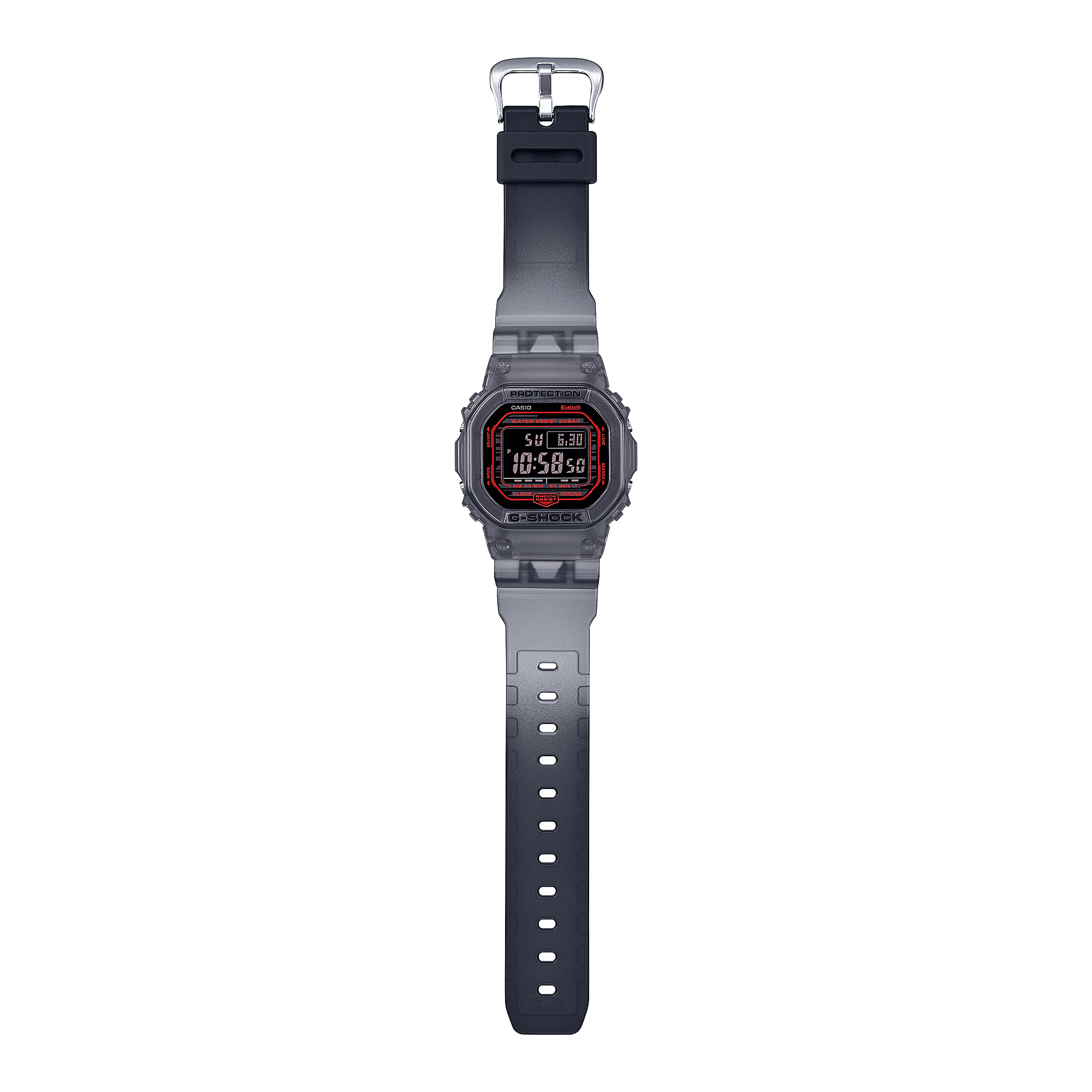 Designed for urban life and near-future inspiration, the DW-B5600 delivers shock resistance, 200-meter water resistance, and seamless smartphone connectivity. Sync with the CASIO WATCHES app for automatic time adjustment, easy settings, world time access, and phone finder functionality.