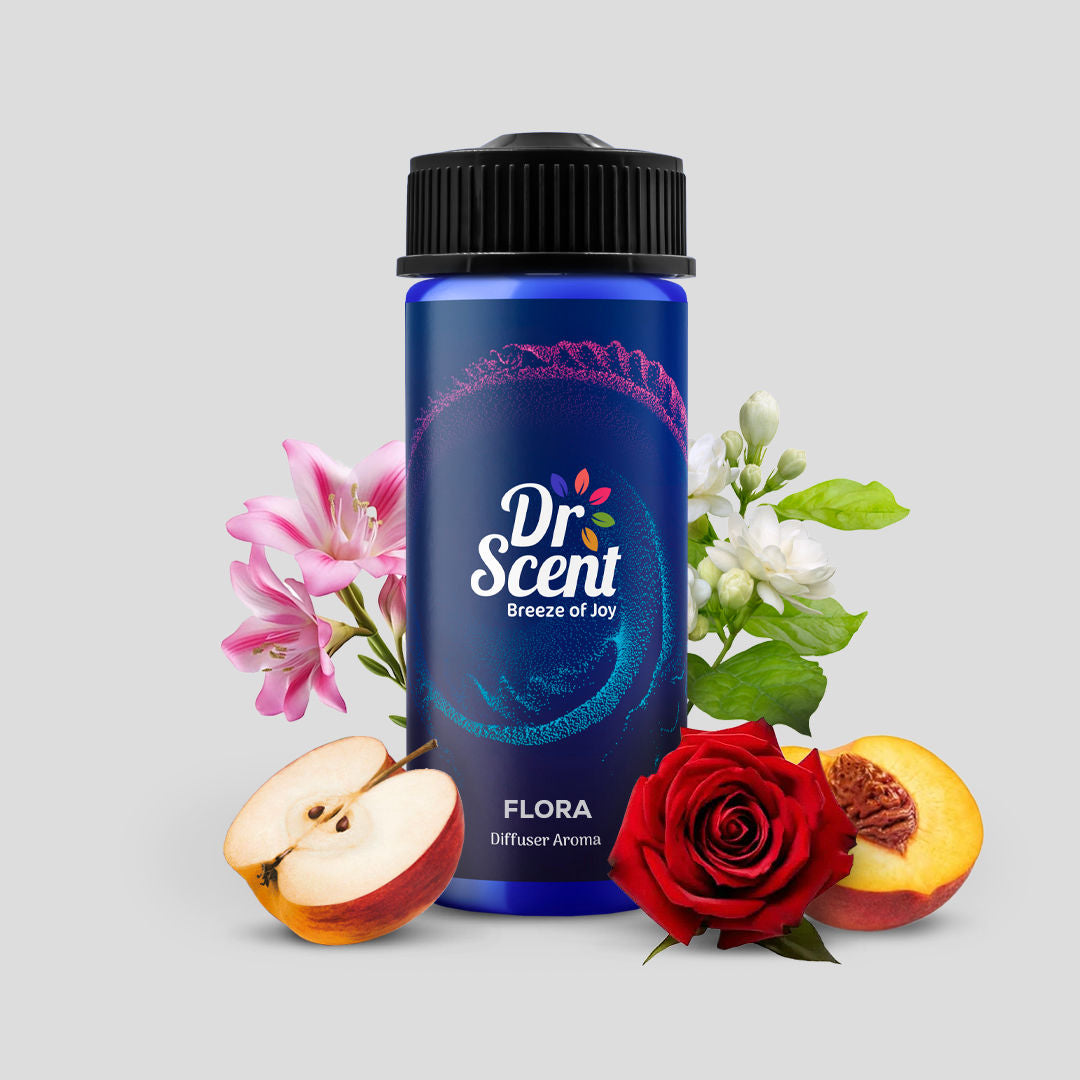 Flora, an aromatic oil that embraces the diversity of fragrant flowers, spreading an atmosphere of joy and refreshment, perfect for spaces in need of a touch of nature, with a pleasant scent suitable for homes and various settings.
