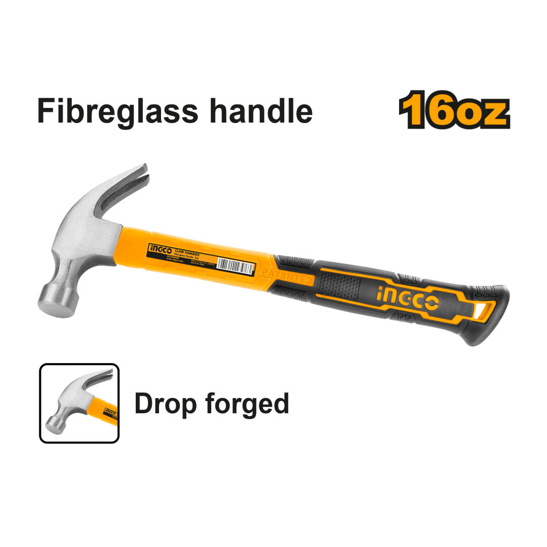INGCO Claw Hammer HCHS8016, 16 oz, 450gm Drop-Forged Fiberglass Handle Hammer