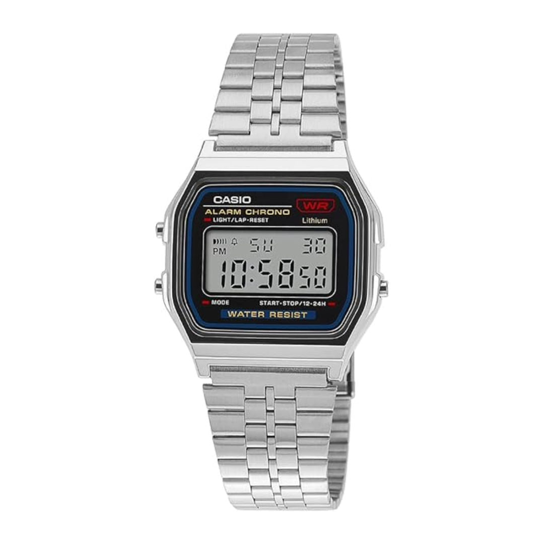 The Casio A159W series offers a timeless retro digital design paired with reliable everyday functionality. With a slim rectangular case, clear digital display, and stainless-steel bracelets, these watches are lightweight, comfortable, and ideal for daily wear. Essential features like a stopwatch, alarm, auto calendar, and LED backlight make them both practical and stylish, whether you choose the classic silver finish or the bold gold-tone look.