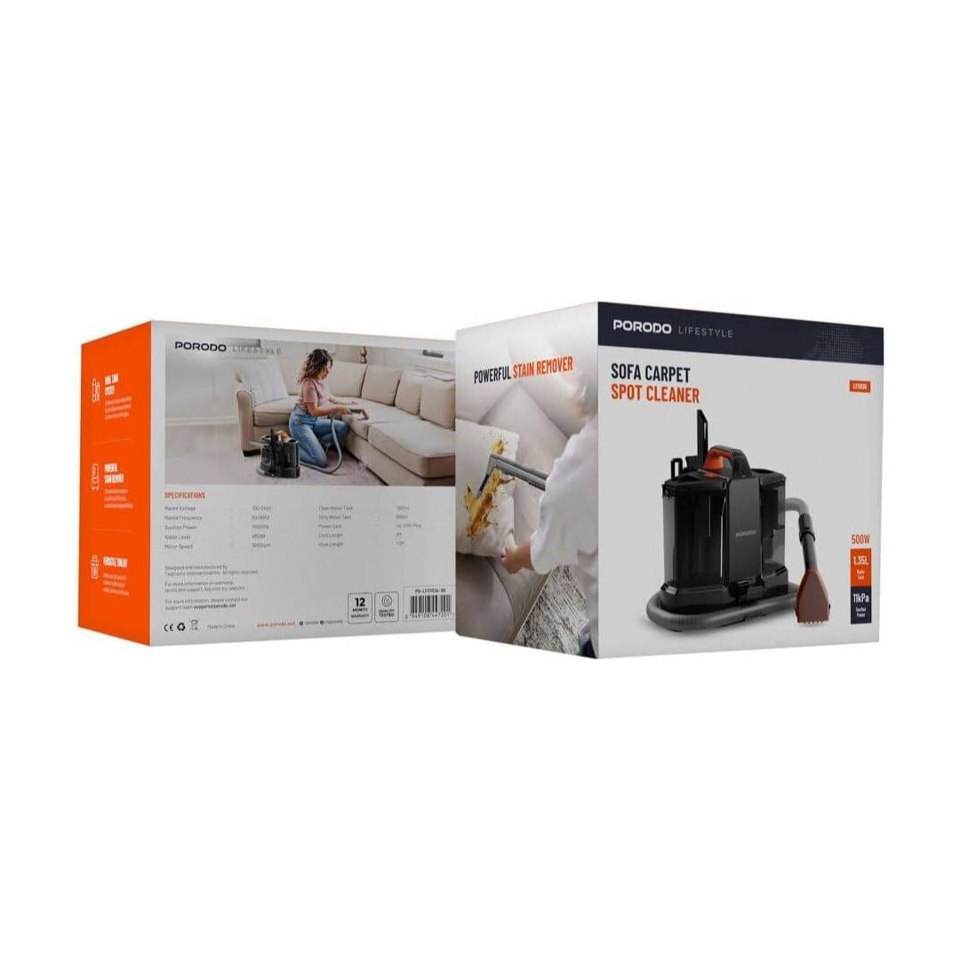 The provided Porodo sofa carpet cleaner is made to combat tough stains on sofas, carpets, and upholstery, ensuring the best results possible. It boasts a suction power of 11000Pa and a 3800rpm speed motor for effective cleaning even on most stubborn dirt and grimes. It also features a dual tank system for clean and dirty water separation, promoting good sanitation with a 1350ml clean water tank and a 600ml dirty water tank. The quiet operation of less than 80dB ensures privacy; therefore, it can be comfortably employed indoors. In addition, the cleaner contains a multi-purpose tool for cleaning the entire home efficiently. A 5-meter long power cord and 1.3-meter long hose offer more space for action, and a UK 3-pin plug is supplied. It is convenient and powerful – this home appliance is essential for every housing arrangement, for which extra cleanliness is a must _ for a neat and dust-free environment.