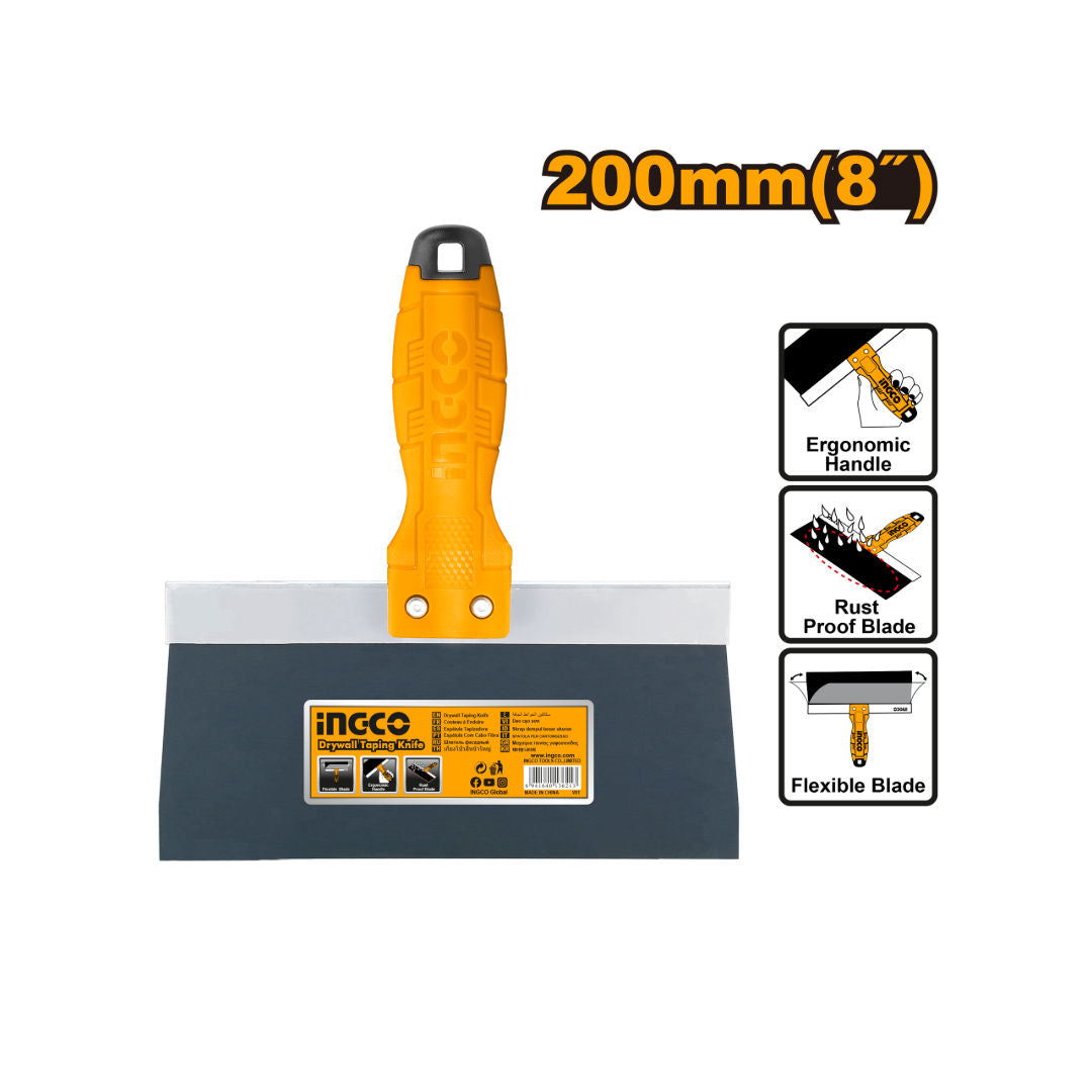 INGCO Drywall Taping Knife 8", 200mm, Carbon Steel Flexible Blade for Putty & Plaster Finishing