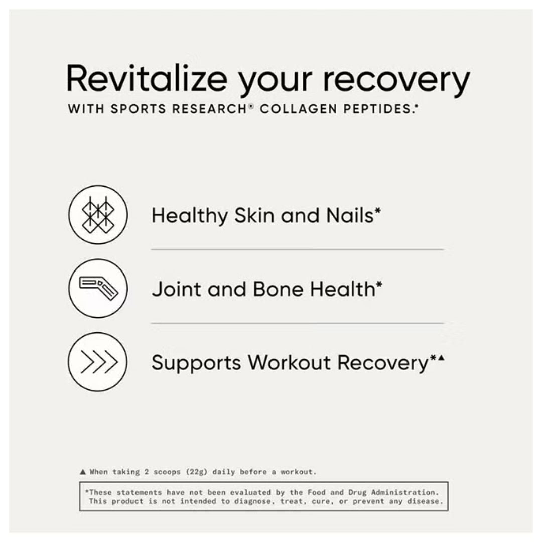 Sports Research Collagen Peptides Powder, Unflavored, Hydrolyzed Collagen