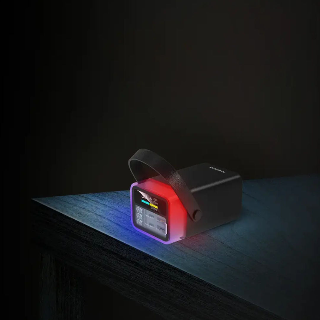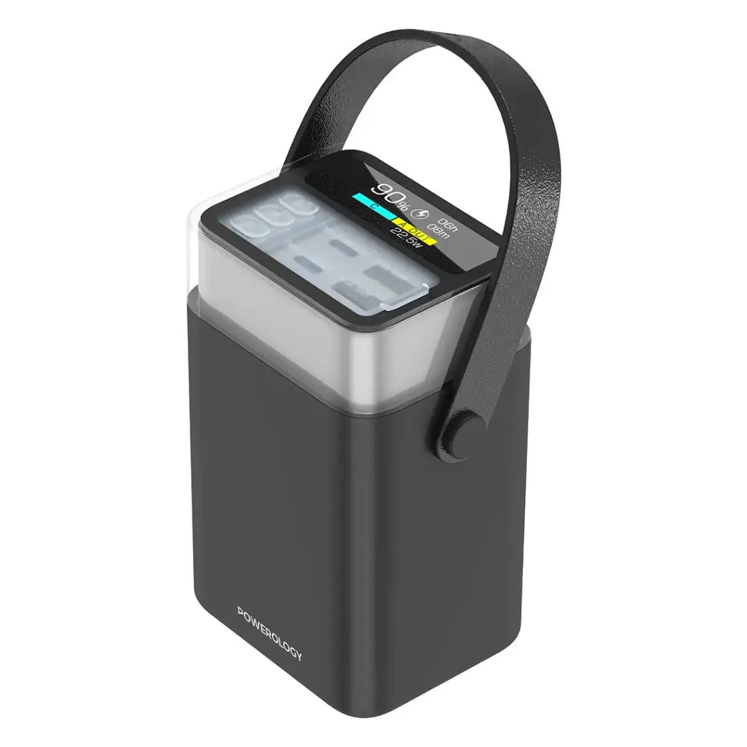 The Powerology Halo Beam 40000mAh Power Bank is a high-capacity portable charging solution designed for heavy usage. With 65W Power Delivery, multi-device charging support, and a unique 360° RGB LED light design, it’s perfect for powering smartphones, tablets, and laptops whether at home, outdoors, or on the go.