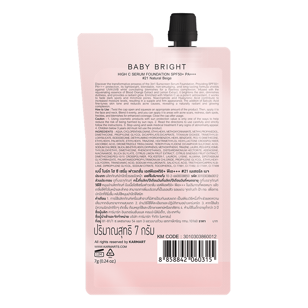High C Serum Foundation SPF50+ PA+++ 7g Baby Bright (M) #21 Natural Beige