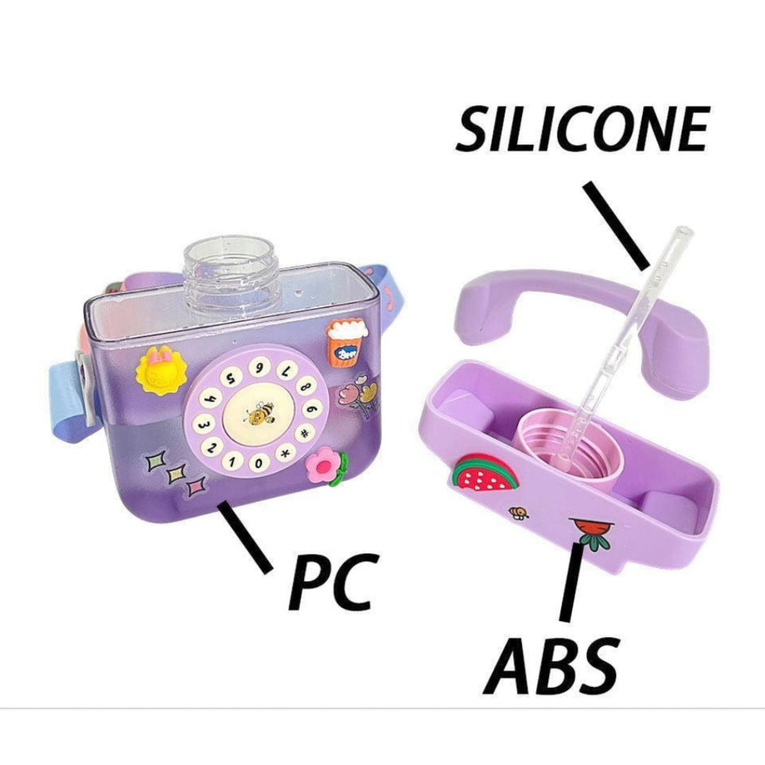 A fun and colorful kids’ plastic water bottle with a unique telephone-style design. With a 400ml capacity and available in blue, green, pink, and purple, it is lightweight, durable, and perfect for school, travel, or outdoor activities.