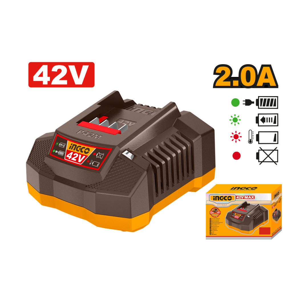 INGCO P42M Battery Charger, Input 220-240V~50/60 Hz, Output 42V, 2A