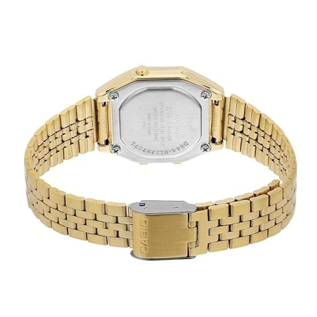 The Casio LA680WGA-1D is a stylish vintage-inspired digital watch designed for everyday elegance. Featuring a compact rectangular grey dial with a gold-tone stainless-steel bracelet, it blends retro charm with modern functionality. Lightweight and comfortable, it’s perfect for daily wear while offering essential timekeeping features in a sleek, minimal design.