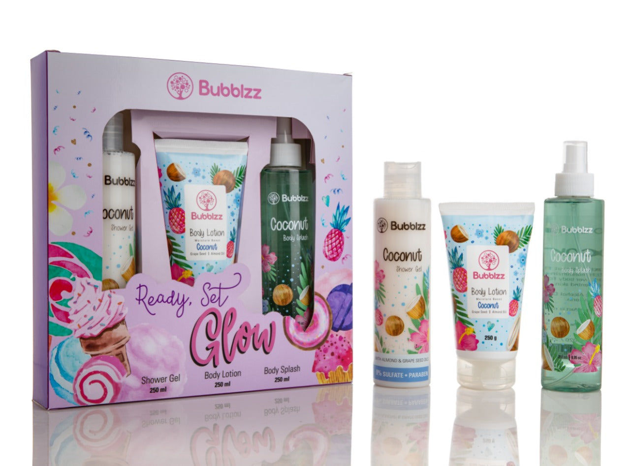 This set is here to help you GLOW! These three products will leave you feeling radiant and pampered from inside out, and will leave your skin feeling clean, perfectly smooth, and delightfully smelling.
