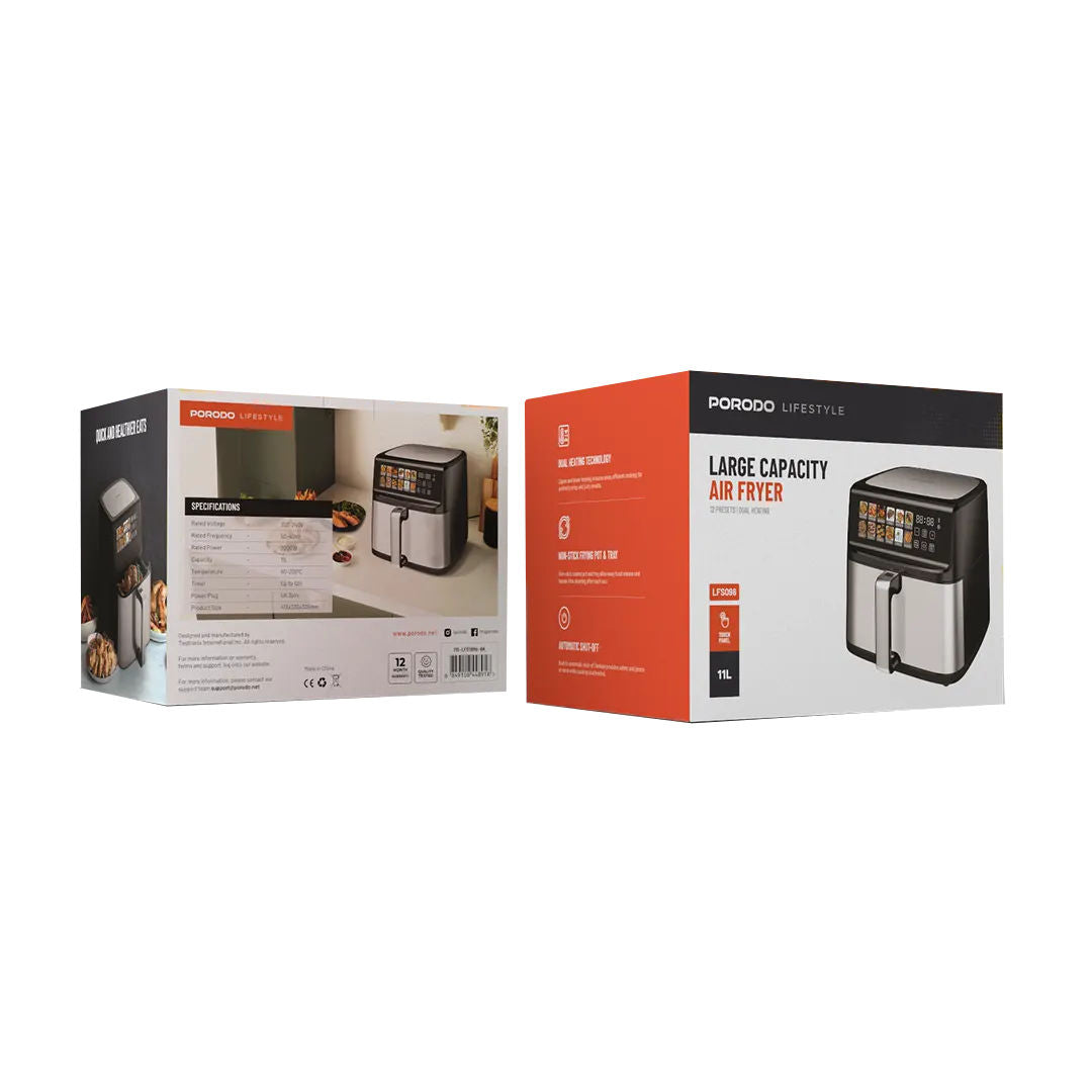 With the introduction of the Porodo Lifestyle Air Fryer with Large Capacity, you can Cook Healthy without Oil. It has dual heating technology that helps with good cooking. This one is powered by a high-power 2200W motor with a temperature range of between 60-200 around and delivers crispy, delicious results every time. Another impressive quality is the 11L capacity, making it apt for family meals and using touch panels for easy control over settings. Hassle-free cleaning comes with a non-adhesive frying pot and tray, while the automatic shut-off system enhances safety. It operates through a UK 3-pin plug, and this air fryer is a must-have in your modern kitchen for easy cooking.