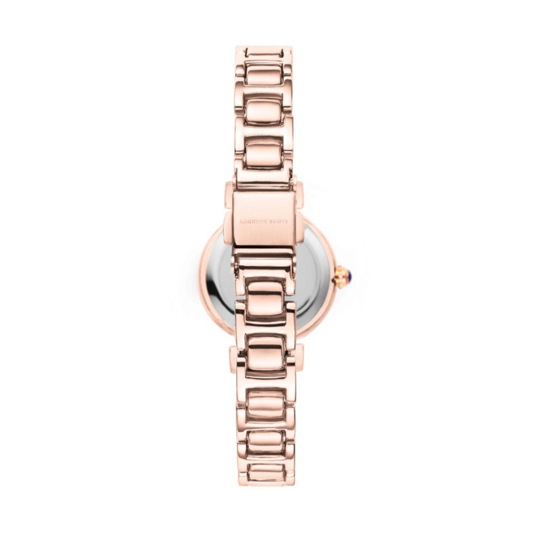 A chic and elegant women’s analog watch from Kenneth Scott featuring a crisp white dial paired with a rose gold alloy bracelet. Powered by reliable quartz movement and finished with a secure clasp, this timepiece is perfect for casual everyday wear and adds a touch of sophistication to your look.