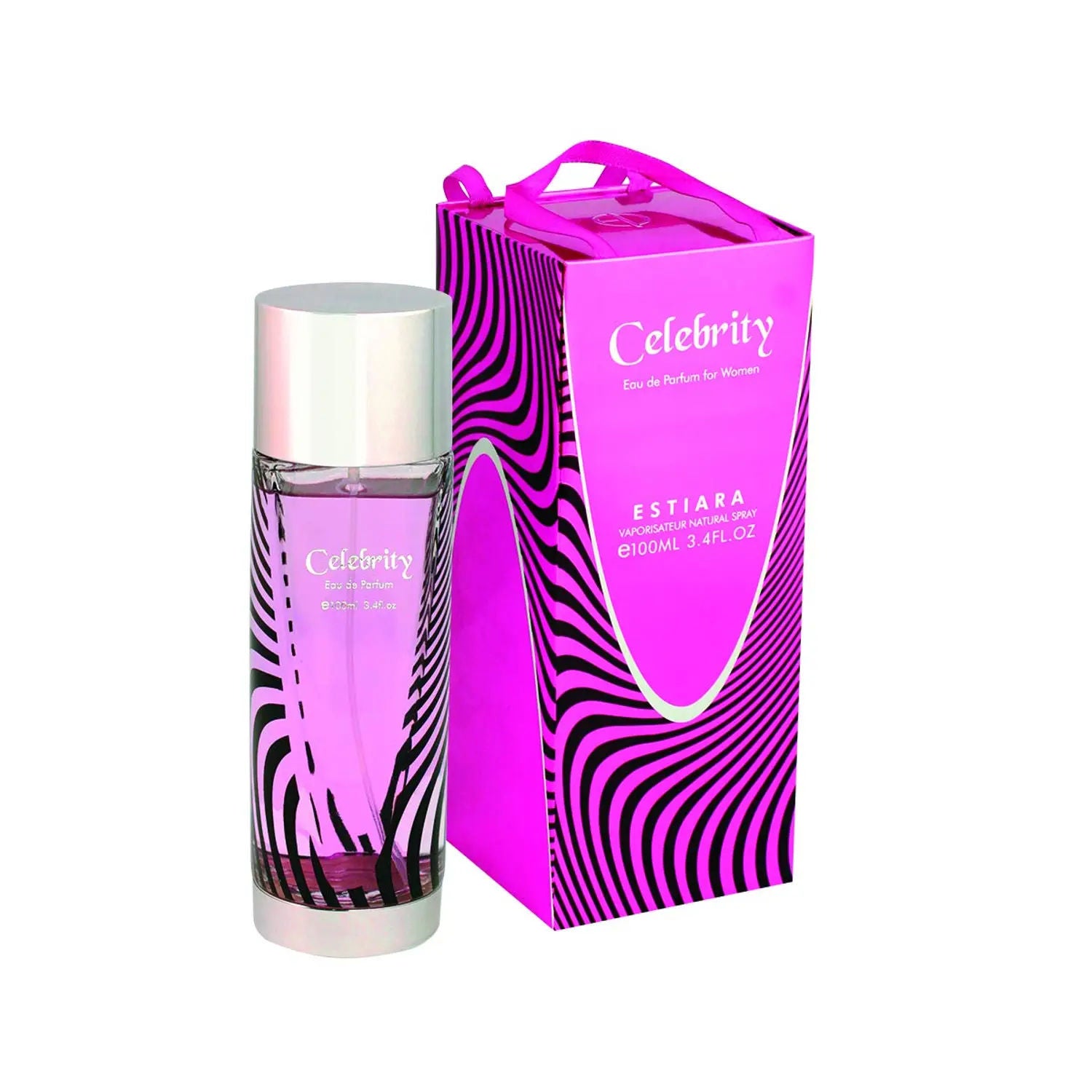 Estiara Celebrity is a radiant and elegant fragrance crafted for women who command attention with poise and charm. It opens with a fresh, fruity-floral burst of freesia, peach, and apple, flows into a soft floral heart of lily-of-the-valley, tuberose, and jasmine, and settles into a sensual, woody-musk base of oakmoss, musk, and sandalwood. Perfectly balanced for glamorous yet wearable sophistication, Celebrity leaves a sparkling and lasting impression.