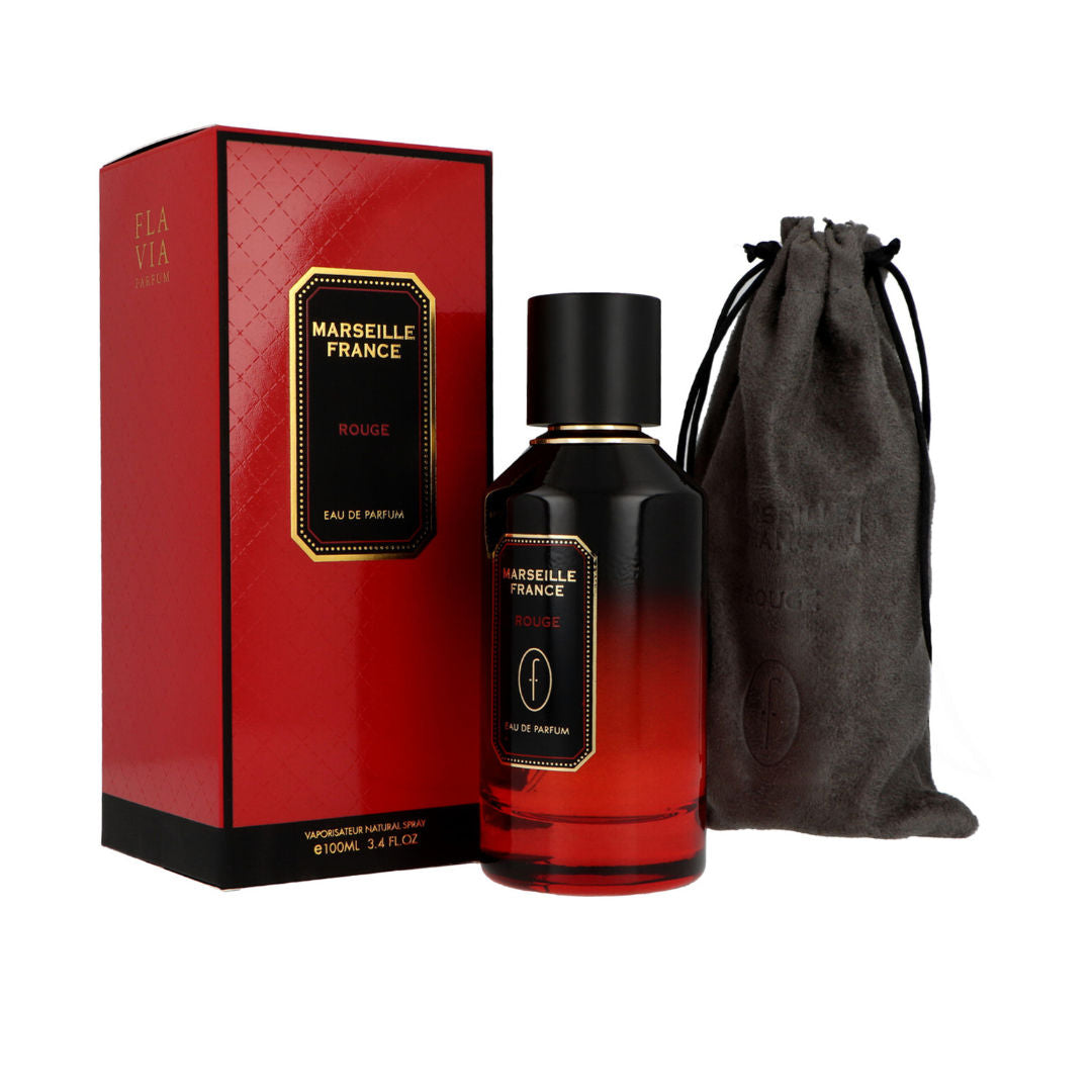 Experience the rich and sophisticated aroma of Flavia Marseille France Rouge. This unisex eau de parfum blends oriental, woody, and spicy notes to create a fragrance that is both bold and elegant. Perfect for daily wear or special occasions, it leaves a lasting impression that embodies warmth, luxury, and refinement. Fragrance Notes: • Top Notes: Incense, Cinnamon, Green Apple, Nutmeg, Saffron, White Pear • Middle Notes: Vanilla, Jasmine, Patchouli • Base Notes: Tobacco, White Musk, Amber, Guaiac Wood, Sandalwood, Vetiver