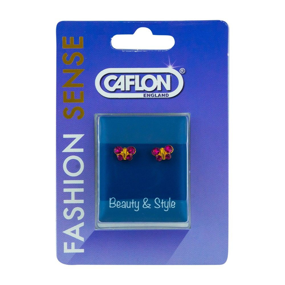 Caflon Fashion Sense Gold Plated Butterfly Fuschia Earring, 1Pc