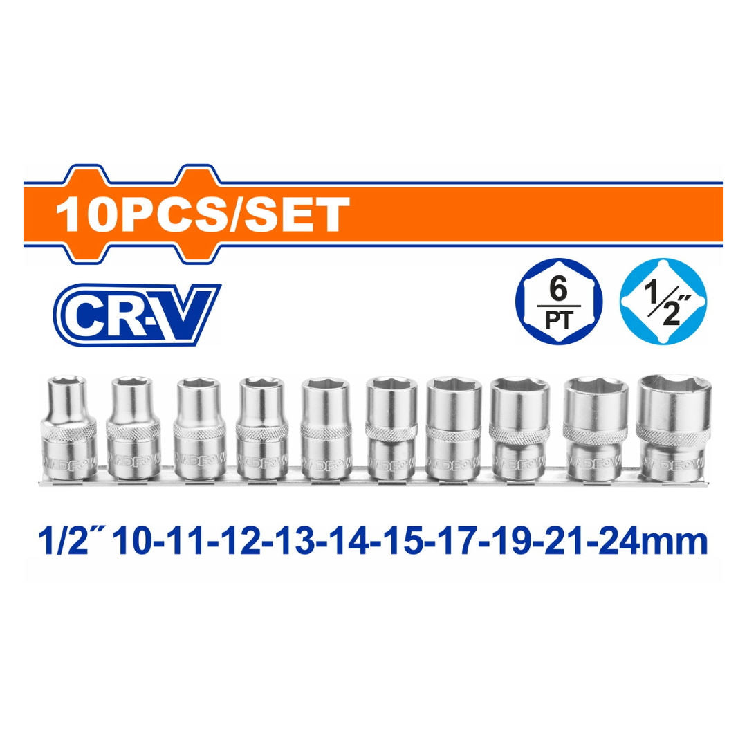 • 10 Pcs 1/2" sockets: 10,11,12,13,14,15,17,19,21,24mm
