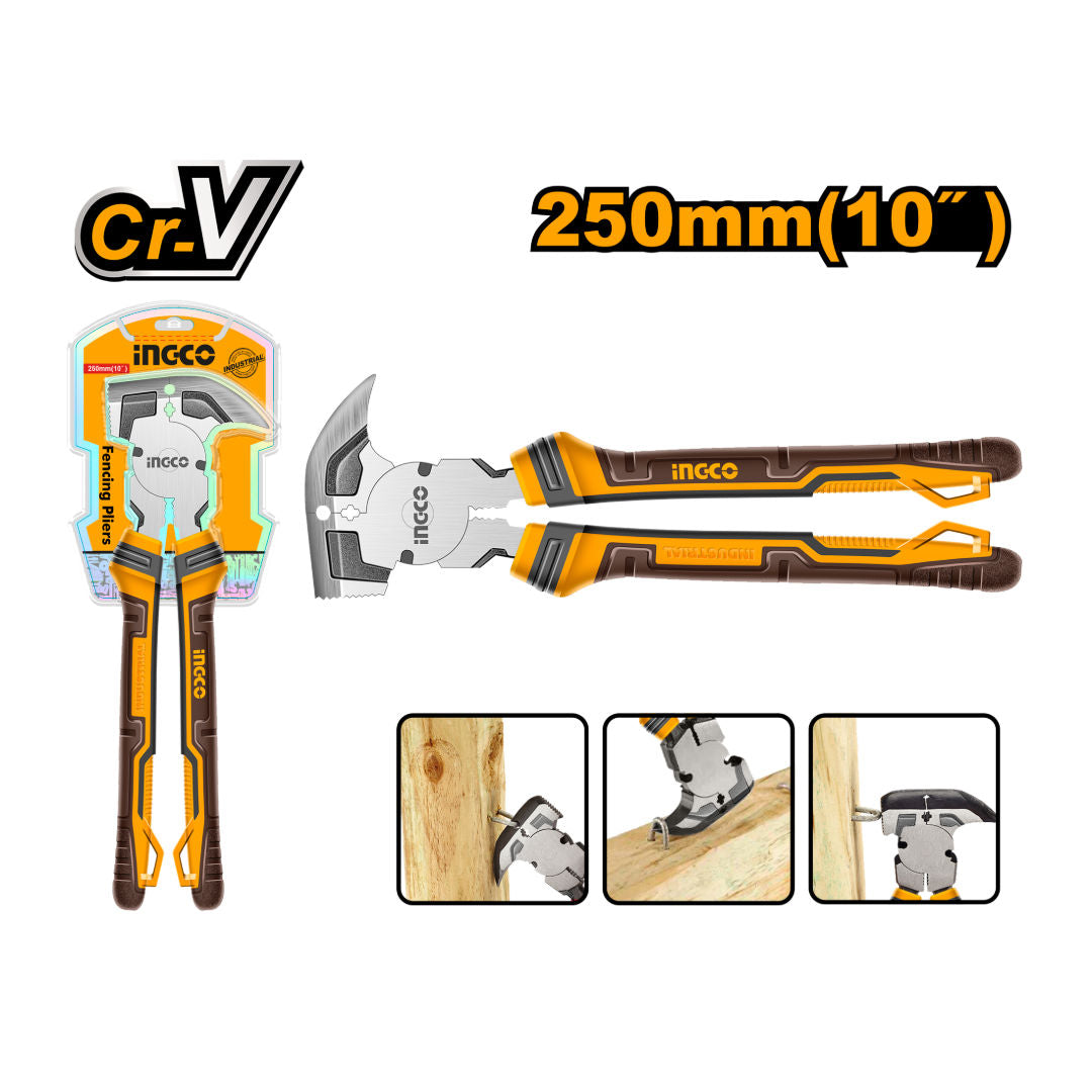 INGCO Fencing Pliers 10", 250mm Heavy-Duty Wire Cutter, Offset Head, Black Finish