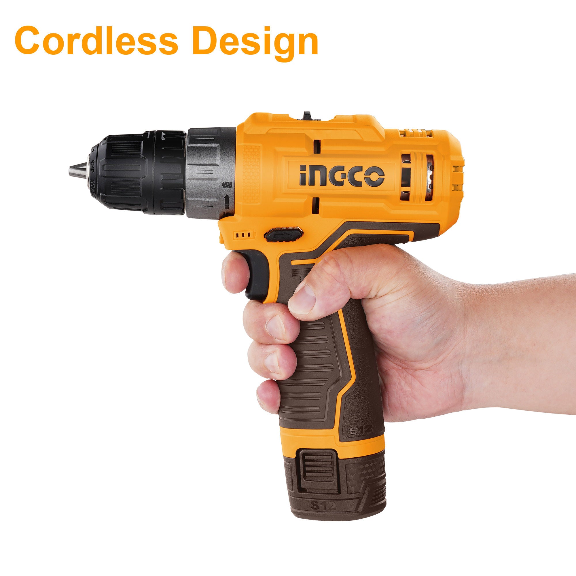 INGCO 12V Cordless Impact Drill Kit, 20Nm, 2-Speed with USB-C Batteries & Carry Case