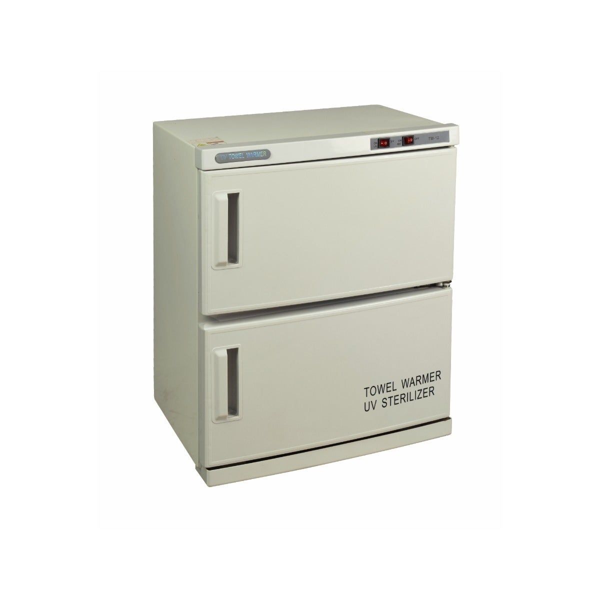 Towel warmer to keep pre-moistened towel warm at a constant temperature. Automatic thermo-control system that keeps towel in perfect temperature for salon & spa services. A combination of towel warmer and UV sterilizer, can warm and sterilize the towels at the same time. Double doors open from across the cabinet. The attractive design of this towel warmer and UV sterilizer feature a metal cabinet with a cool-touch composite door and integrated handle with magnetic latch. With separate function switches, sterilizing or heating function individually and simultaneously. For maximum efficiency , the door is double-sealed to minimize heat loss. Removable drip tray mounted underneath cabinet door. Rust-proof steel interior that can lasts for years.