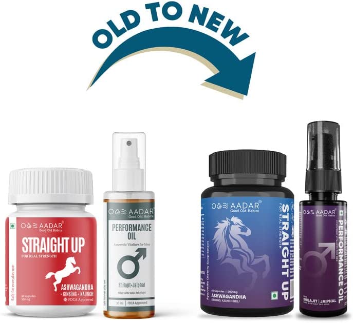 AADAR Ayurvedic Performance Oil and Straight Up Capsule are supplements designed to boost energy, enhance strength, and improve sexual health.