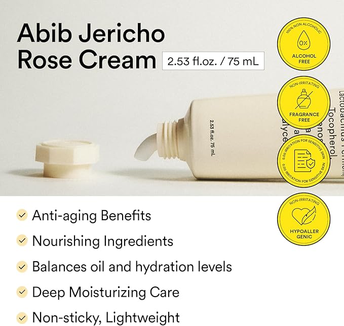 Abib Jericho Rose Crème Nutrition is an intensely nourishing cream formulated to deeply hydrate dry and dull skin. Enriched with extracts from the resilient Jericho Rose, it helps restore skin vitality, elasticity, and a radiant glow while forming a protective barrier against dryness and environmental stress.