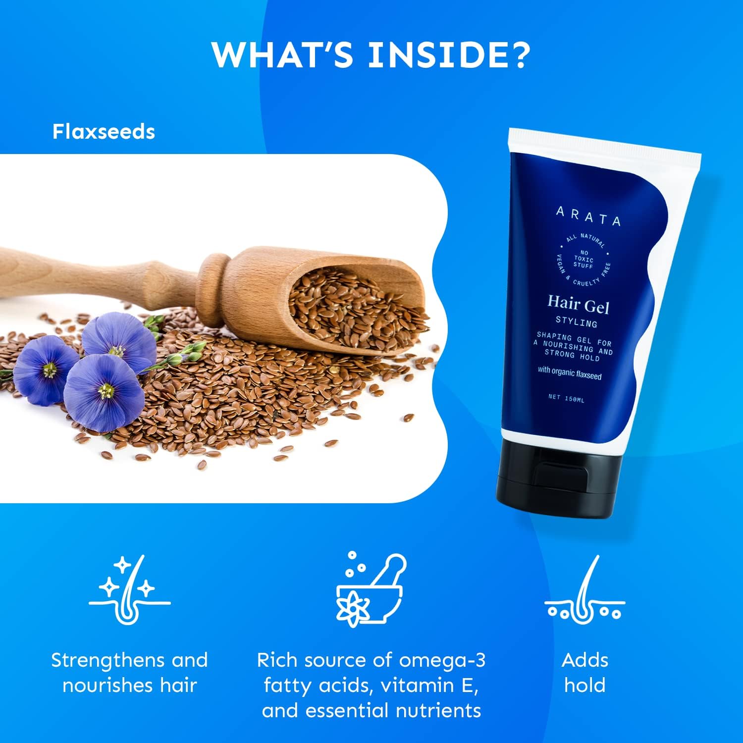 ALL-NATURAL STYLING & HOLD: Packed with the natural goodness of organic flaxseed extracts, our hair gel is great for everyday styling and nourishment. It gives a strong hold and offers salon-like styling.