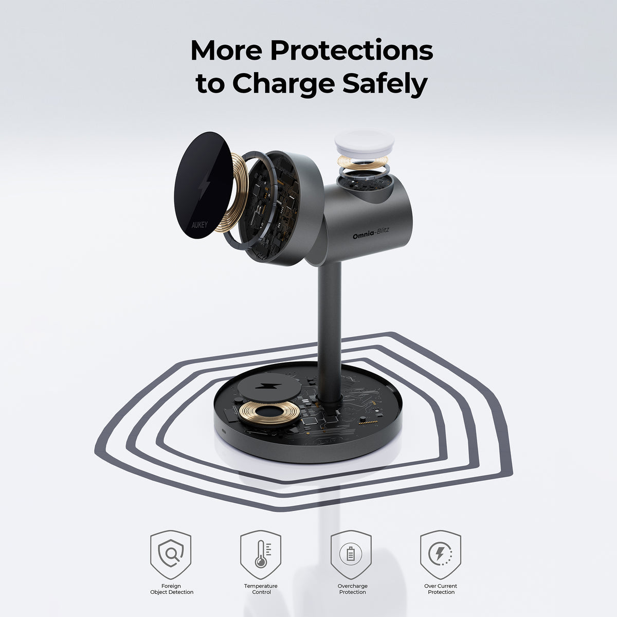 MagFusion 3-in-1 stands as a testament to innovation, seamlessly integrating the functionalities of a wireless charger and holder, all powered by the state-of-the-art Omnia-Blitz technology. Tailored to cater to the charging demands of iPhone, AirPods, and Apple Watch, it excels in decluttering spaces from tangled cables. With the ability to deliver Qi2 wireless charging up to 15W and compatibility with diverse standards, this device ensures not only efficient performance but also rapid charging for the latest iPhone 15.