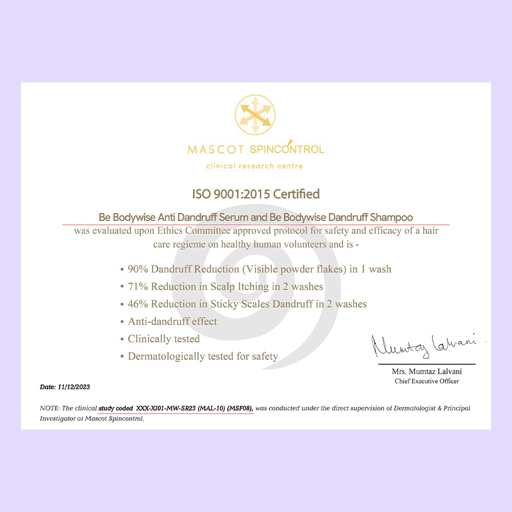HOW TO USE: Apply a few drops of serum on scalp and keep it overnight or for a minimum of 6 hours. Wash it off the next morning with Be Bodywise Anti dandruff shampoo.
