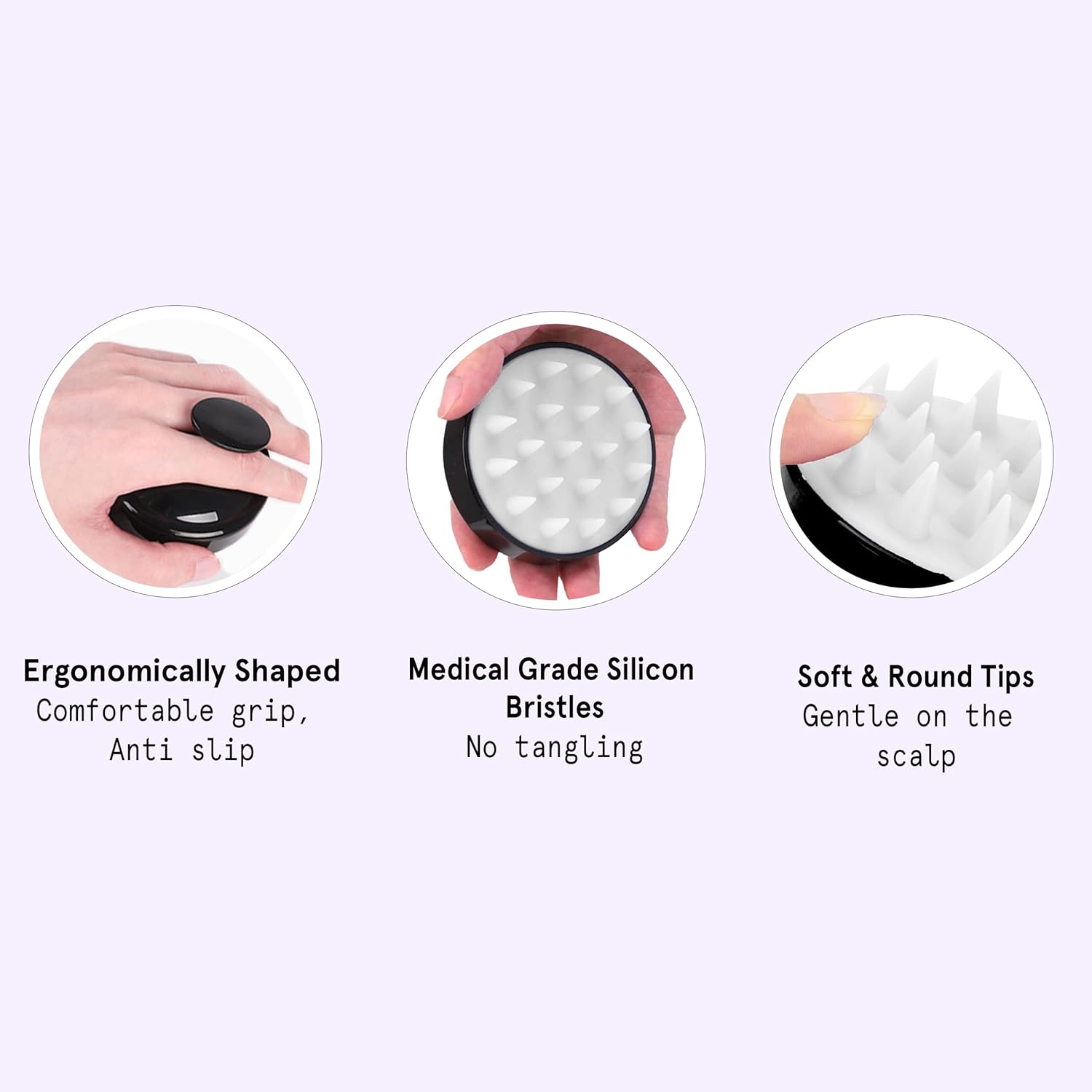 EXFOLIATES SCALP - Super soft Medical Grade Silicon Bristles that bend as you massager on your wet & dry scalp. It gently massages scalp, improves blood circulation & exfoliates follicles promoting faster hair growth, With its ergonomic design it cleans your scalp & hair making giving a cleaner healthier scalp.