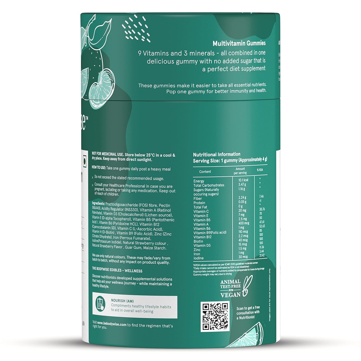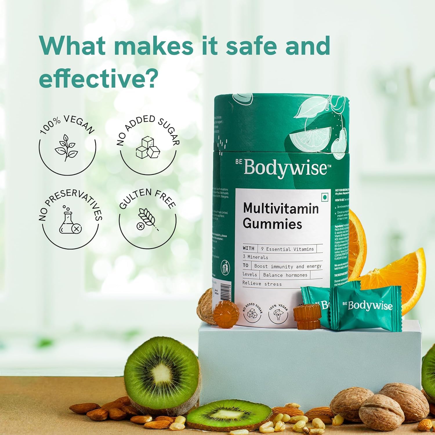 Be Bodywise Multivitamin Gummies | 60 Day Pack | With Fibre, Zinc, Iron & Biotin | Vitamin D3, B6, E & A | Boosts Energy & Stamina, Improves Immunity & Skin Health | Vegan, Gluten & Gelatin Free
