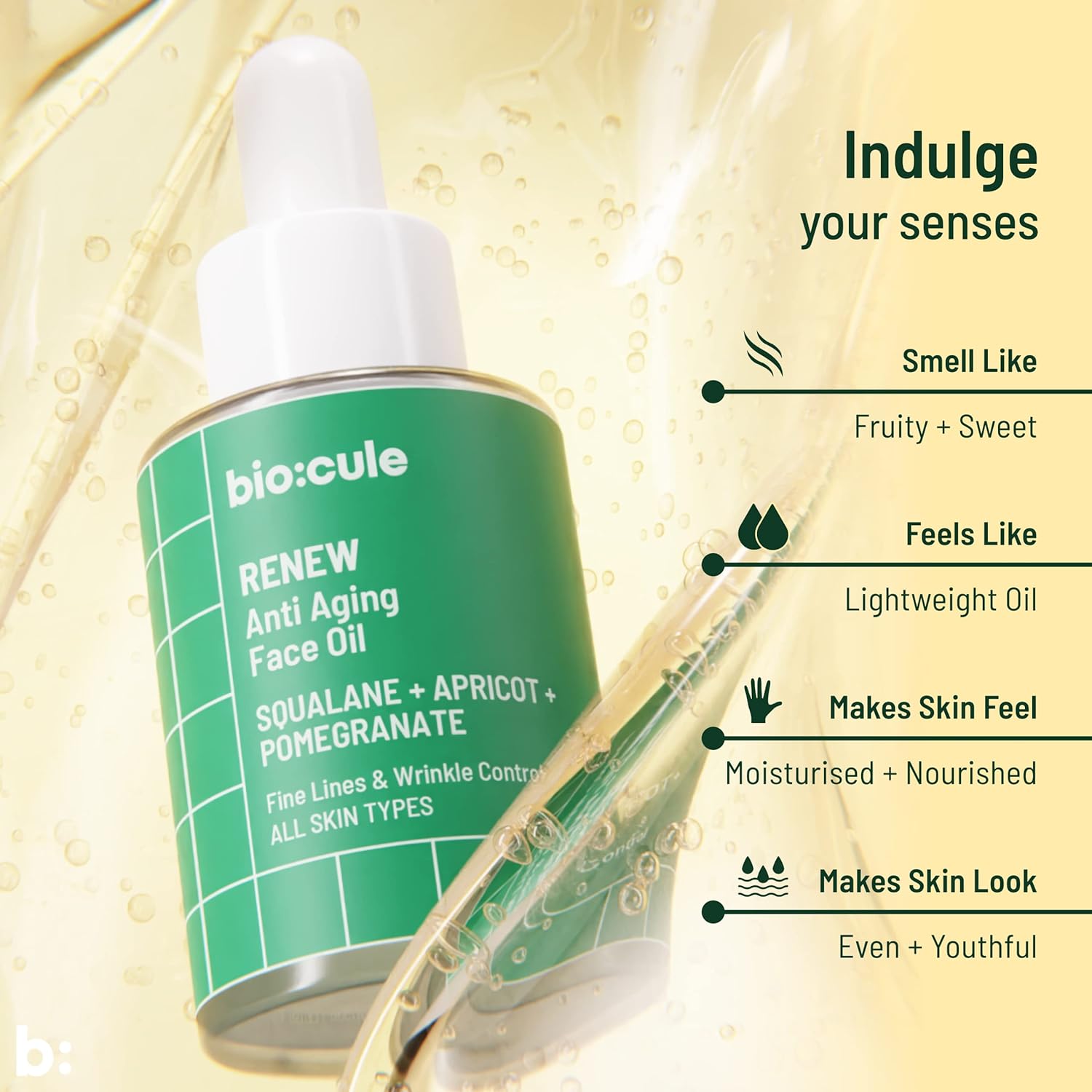 Biocule Renew Anti Aging Face Oil : Squalane + Apricot + Pomegranate 15ml