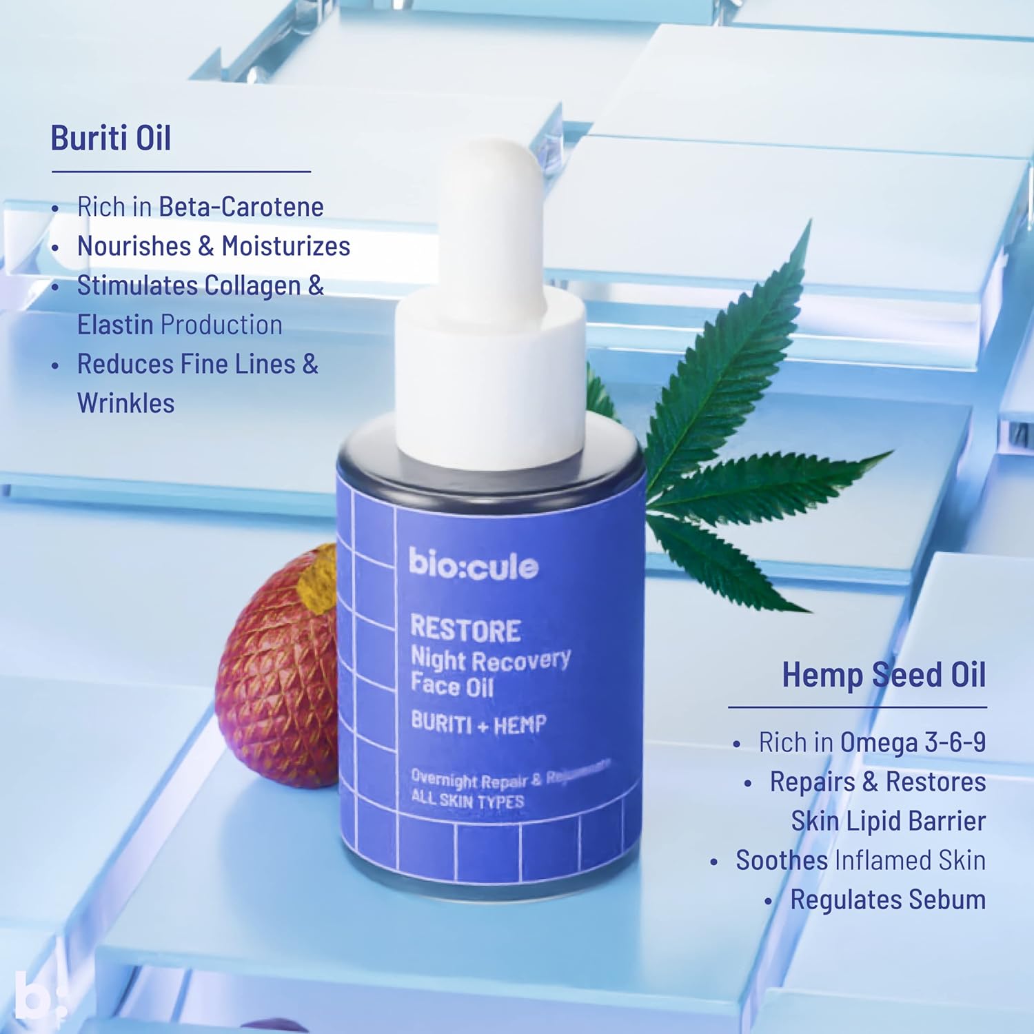 Biocule Restore Night Recovery Face Oil : Buriti + Hemp 30ml