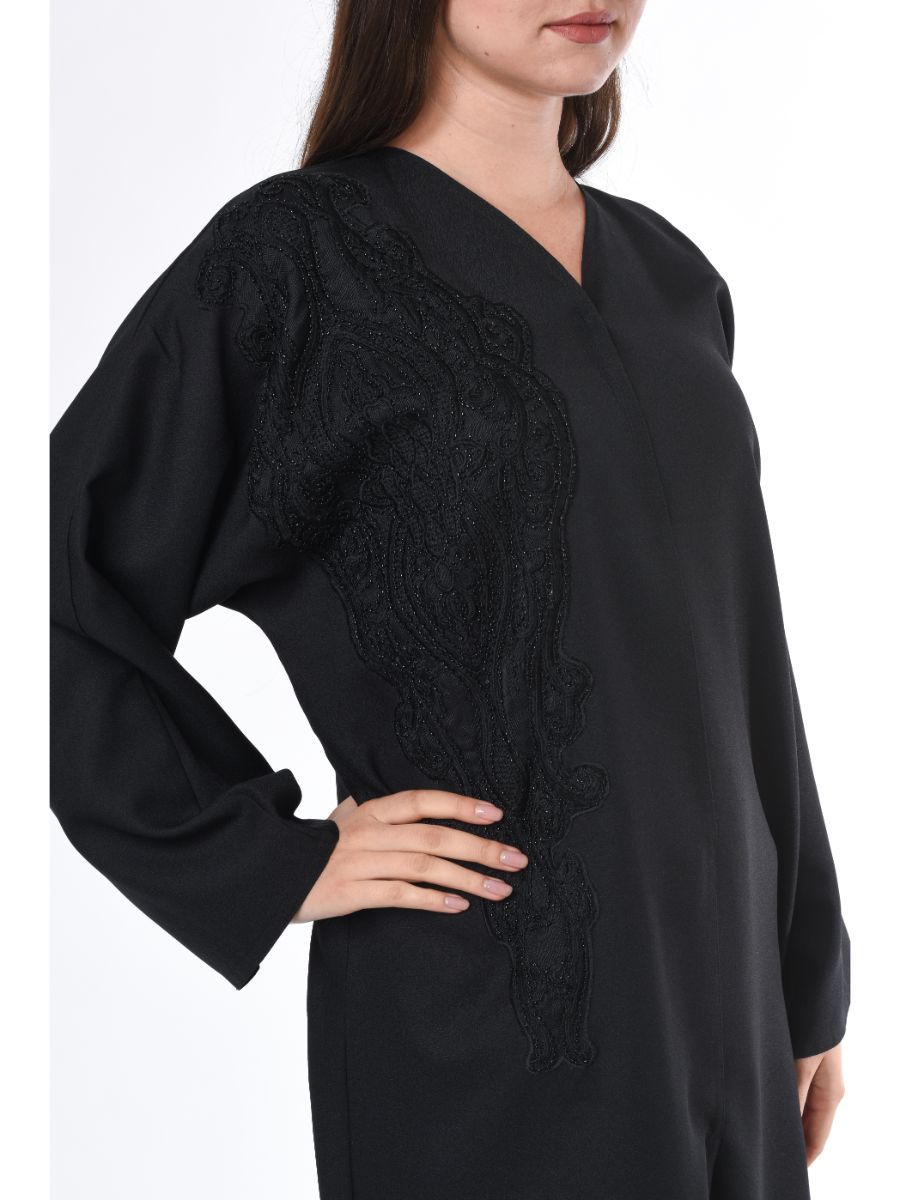 MOiSTREET Black Abaya with Patchwork Detail
