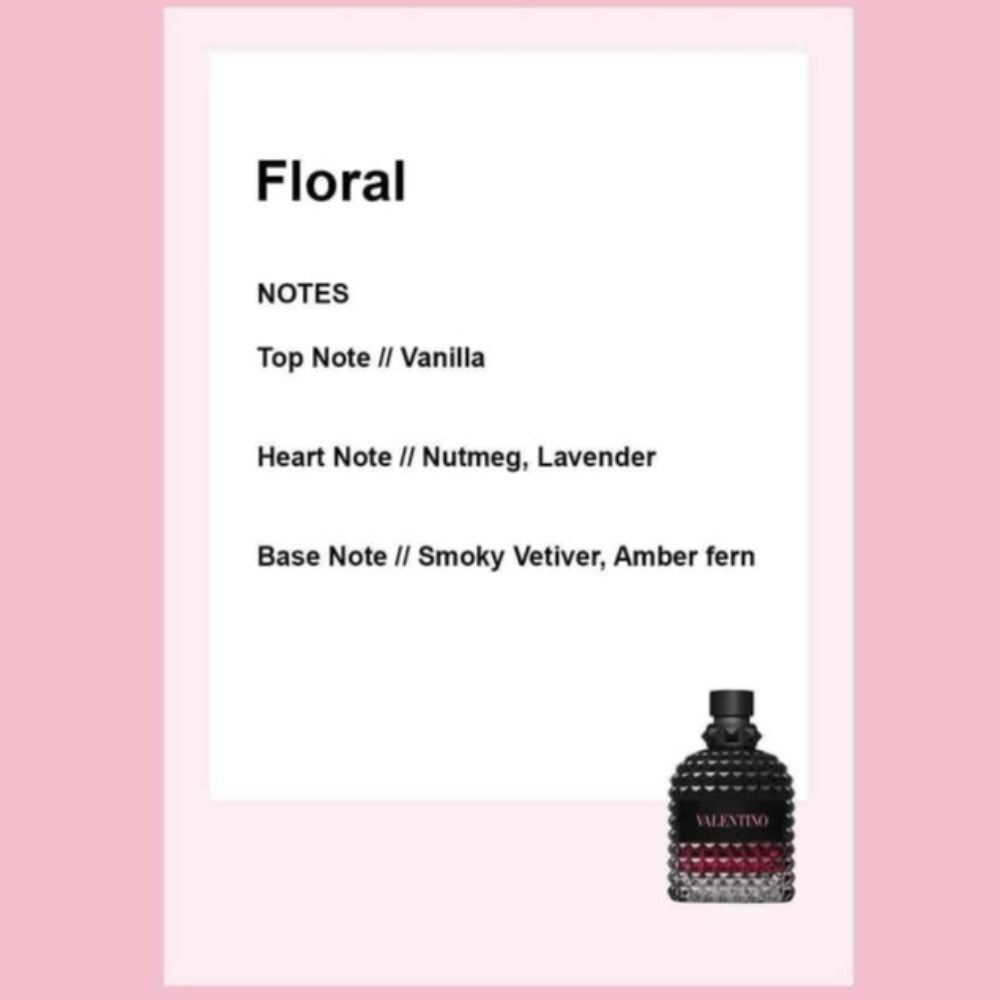 Valentino Garavani BORN IN ROMA INTENSE ignites the spark of celebration, reminiscent of the eternal city by night. This fragrance takes the bold tone of the original scent towards a warmer, more sensual expression: The first provocation comes from VANILLA BOURBON, infusing the fragrance with warm, sensual tones. The central note comes from LAVENDER, giving the fragrance a burst of floral freshness.